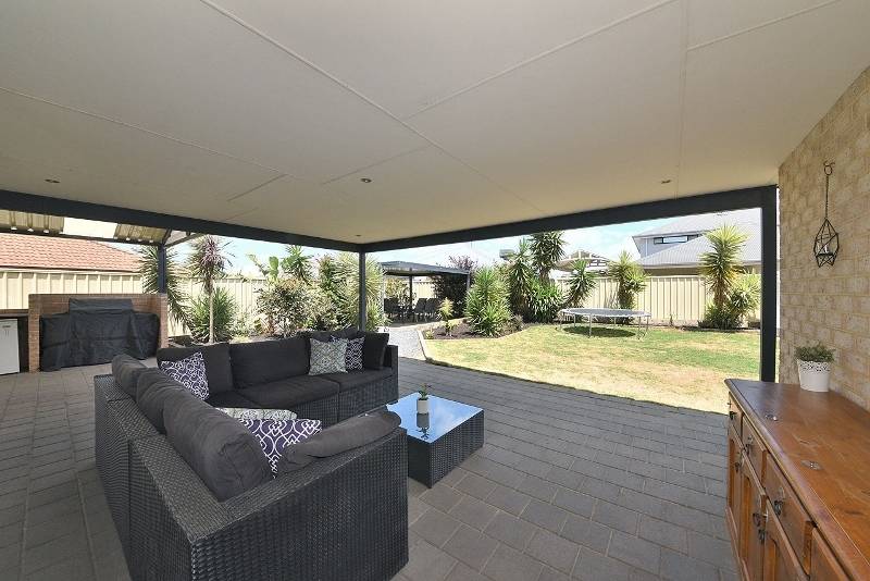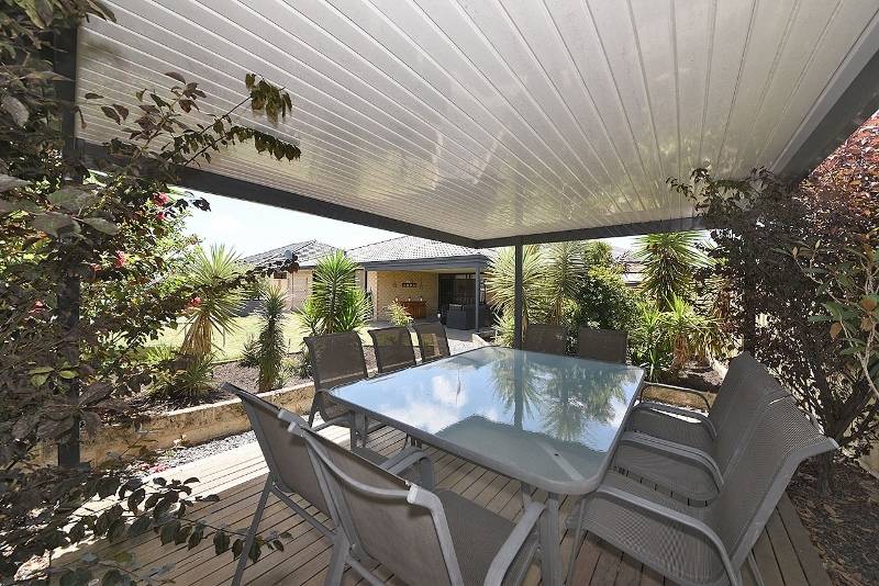 Massive outdoor entertaining areas including UMR alfresco, pitched patio, BBQ area plus separate free standing patio, all overlooking a lawn area for the kids to play