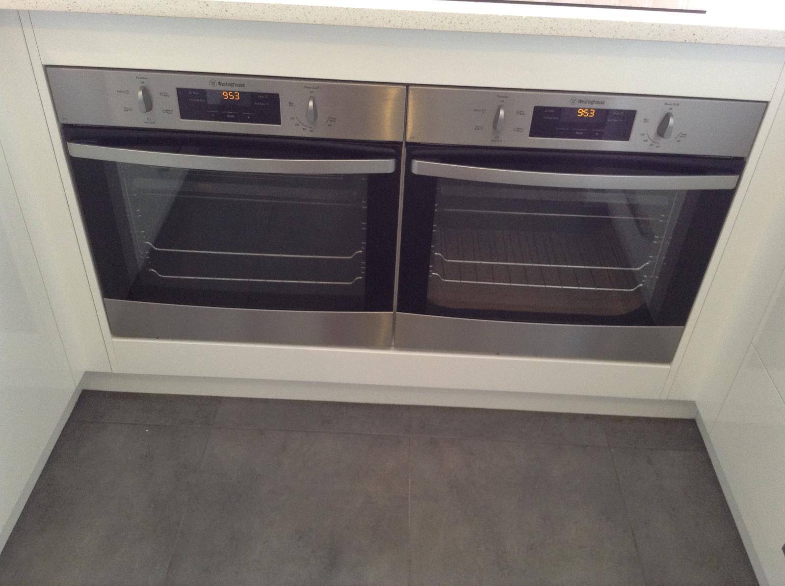 The cooking areas has an induction cooktop, double ovens and a dishwasher