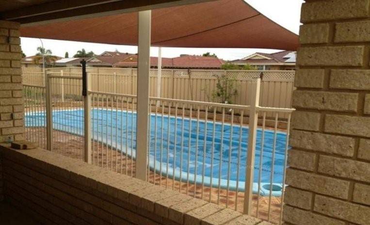 - Large patio area over looks below ground salt water pool