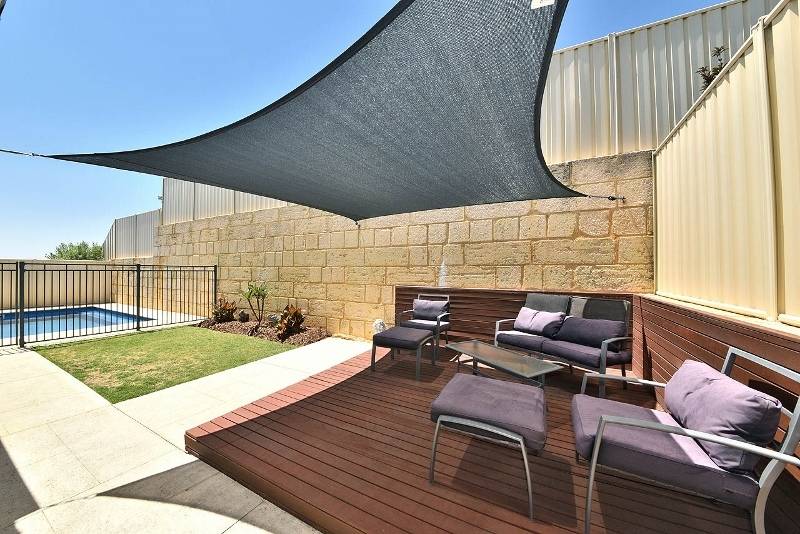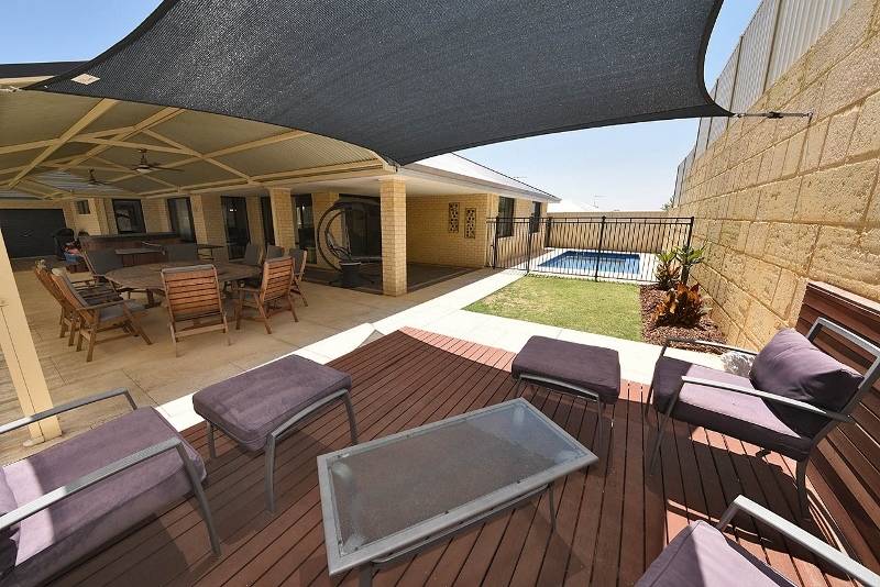 Sensational outdoor entertaining with alfresco area (UMR,) plus full length pitched patio with ceiling fans and feature decking area (with shade sail)