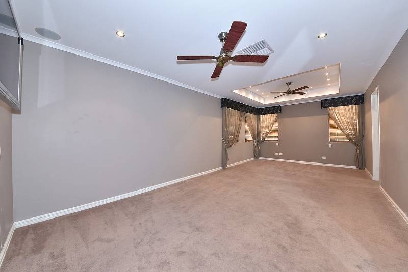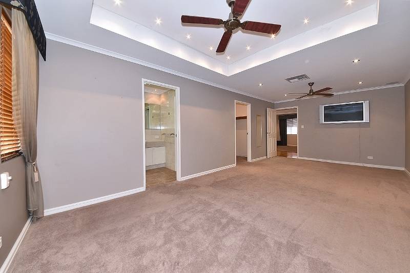 Resort styled master bedroom with extra length for parent retreat, feature recess ceiling and lighting, TV point, 2 ceiling fans and W.I.R.