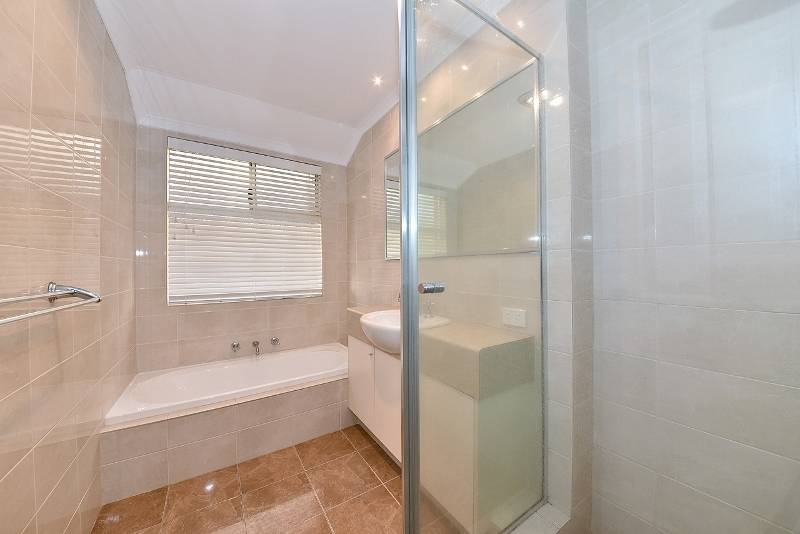 Quality 2nd bathroom with full height tiling, bath, shower (with screen) and heat lamp