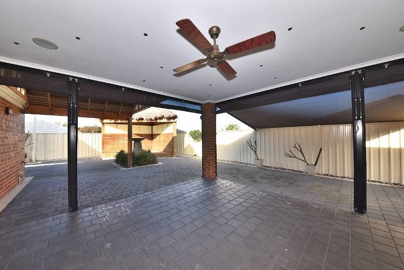 A superb alfresco area with feature lighting, tv point, ceiling fan and café blinds perfect for all year entertaining