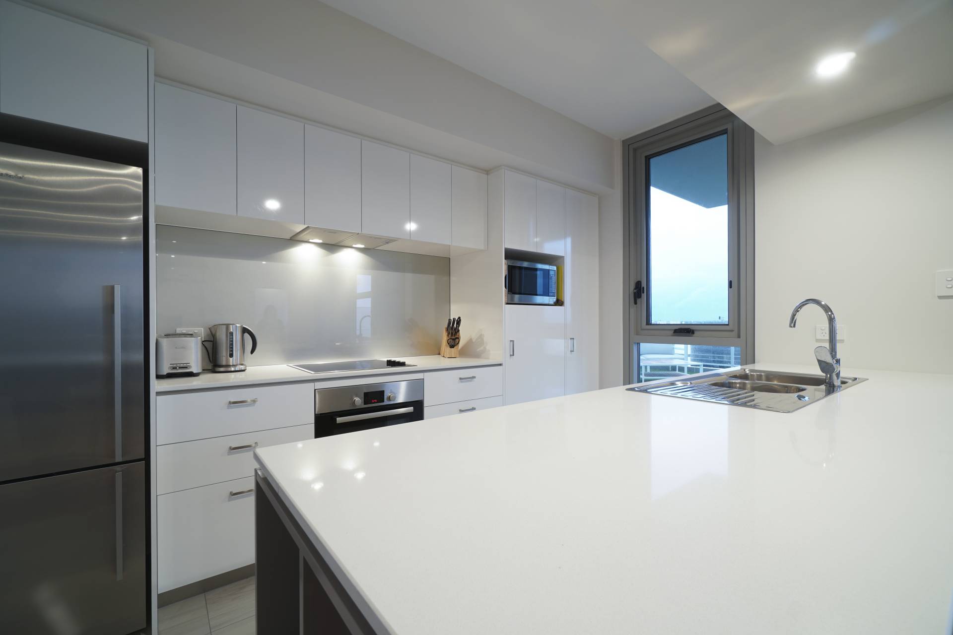 Just 500m from the CBD, this 9th floor stunning 2 bedroom 2 bathroom fully furnished apartment features spacious open plan kitchen and meals area, flowing into the lounge room and outdoor entertainers balcony. The master bedroom includes a walk-in robe and ensuite, and Bedroom 2 includes a built-in robe and easy access to the 2nd bathroom and laundry. The apartment is completed with NBN connectivity, 2 secure car bay and storeroom.