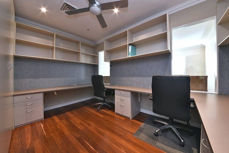 Huge study/home office or kids activity room with inbuilt desk, shelving and cupboards