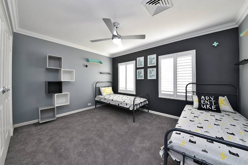 Bedroom 3 and 4 are double in size with ceiling fans and robes with doors