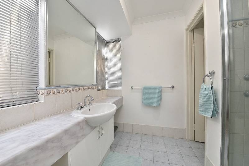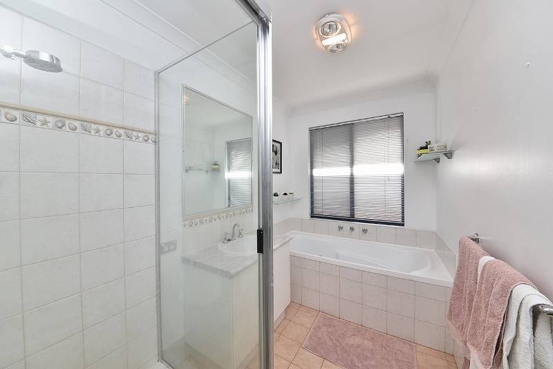 Spacious 2nd bathroom with extra deep spa bath, shower (with screen) and heat lamp