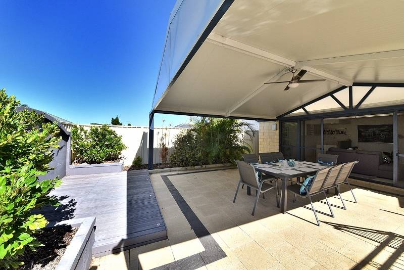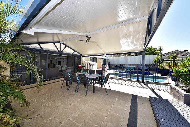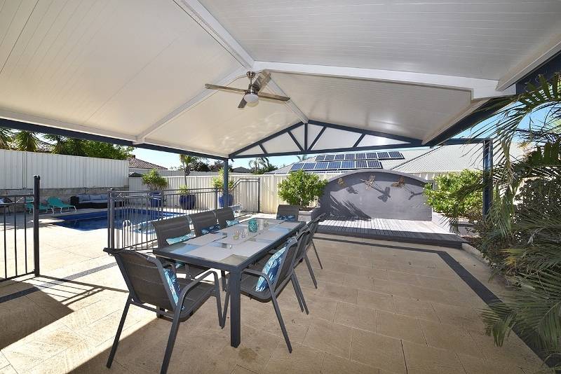 Superb outdoor entertaining with pitched patio and fan, all overlooking a fully fenced solar heated below ground pool