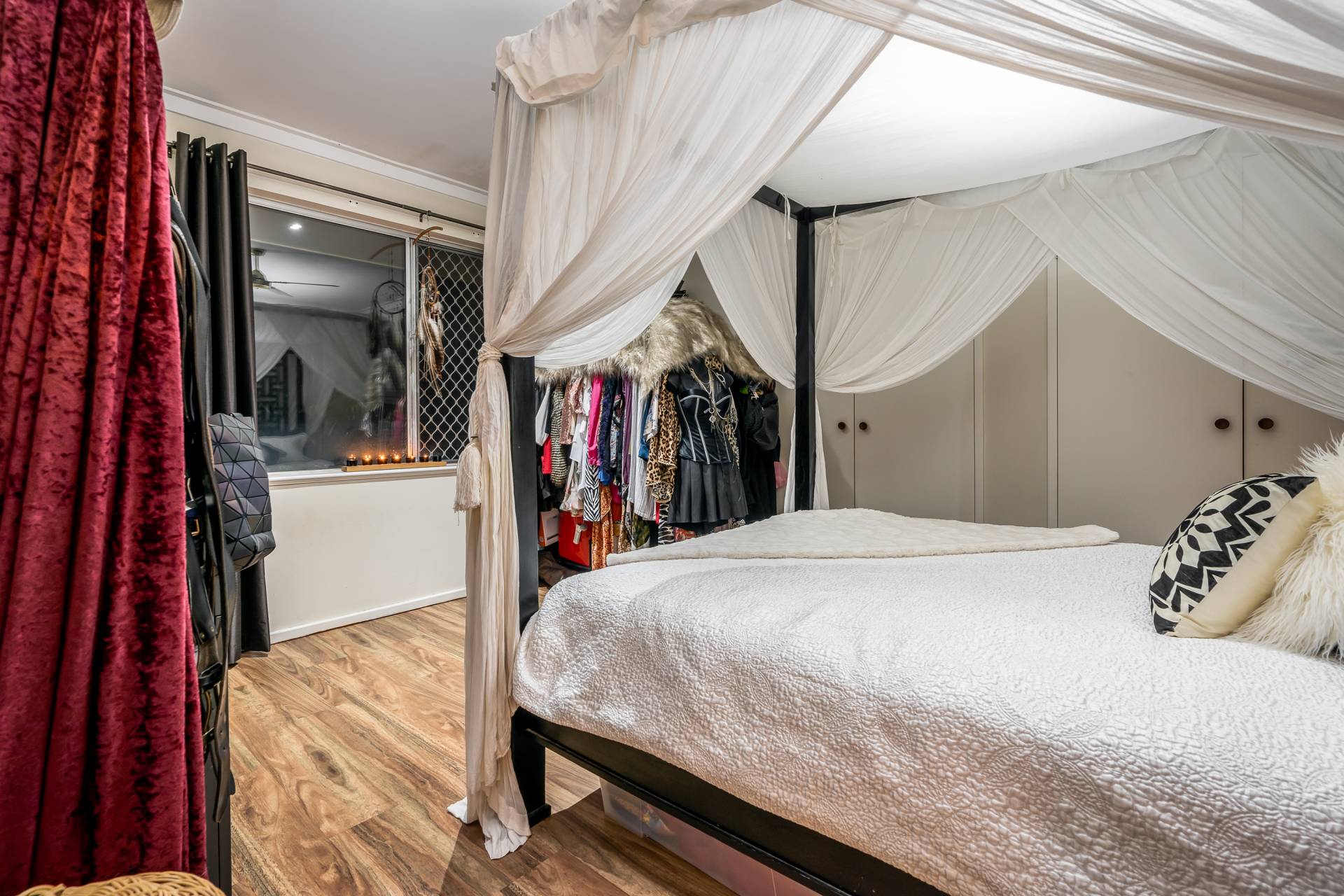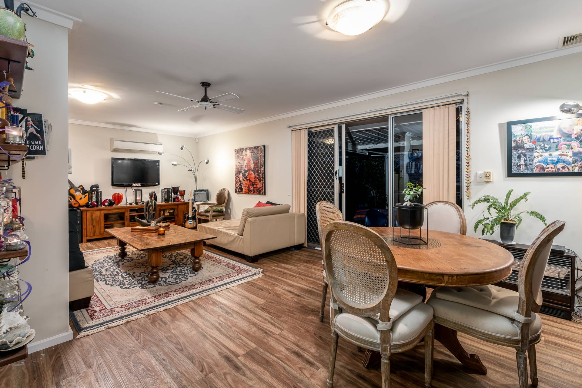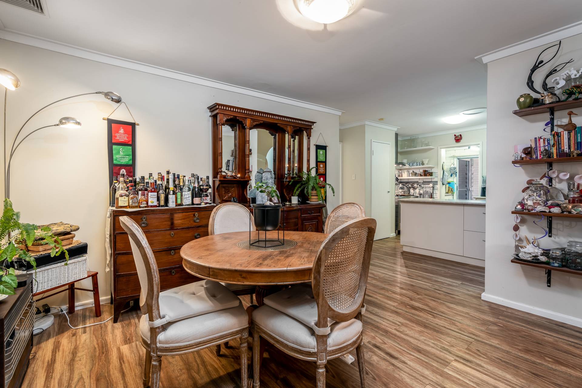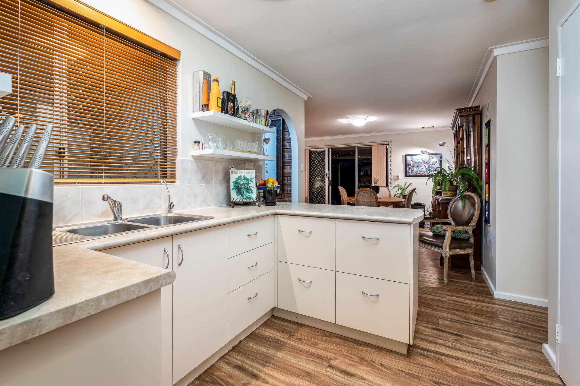 - Beautiful wood affect vinyl planked floors that flow down the hallway right through to the bedrooms and open plan kitchen family meals Undercover outdoor entertaining with pitched pergola
