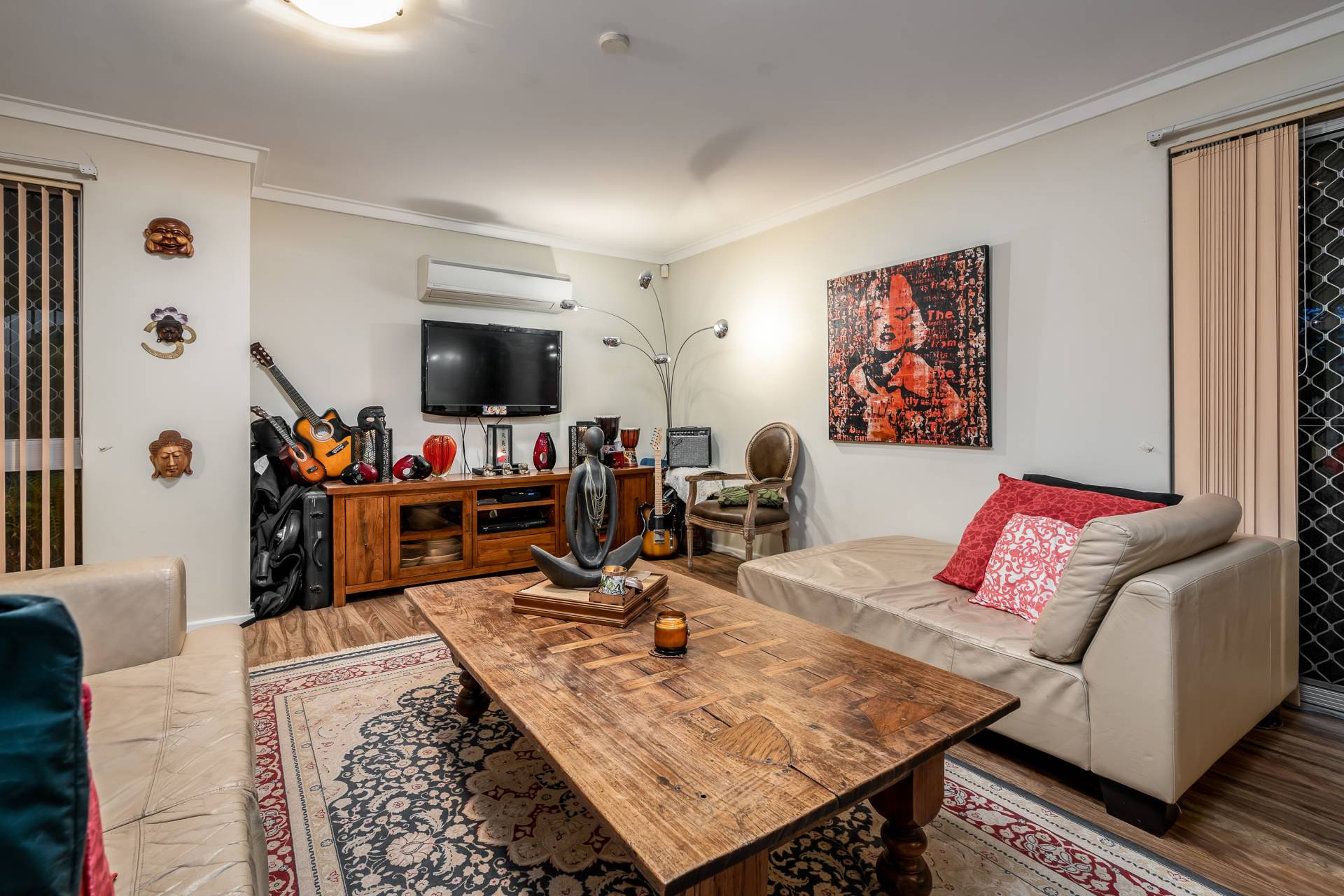 - Own alarm system and security screens throughout
