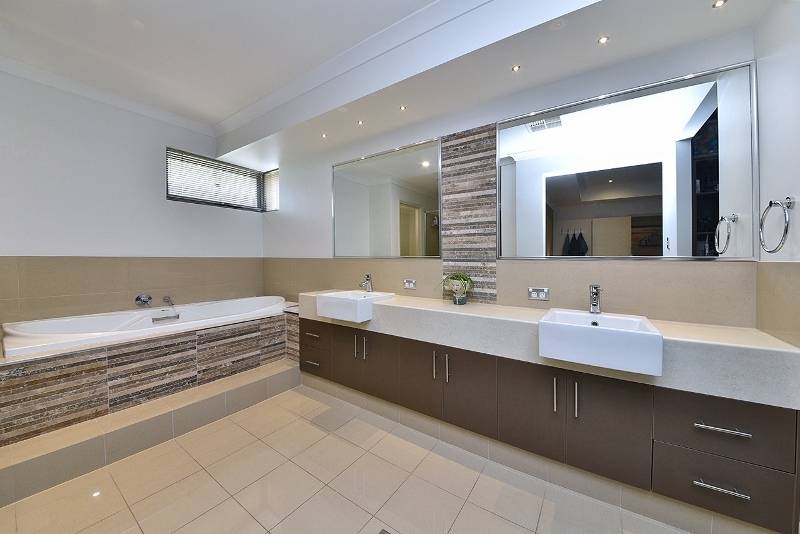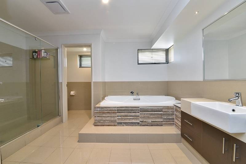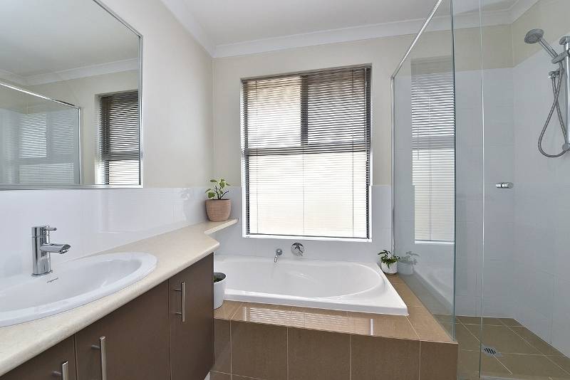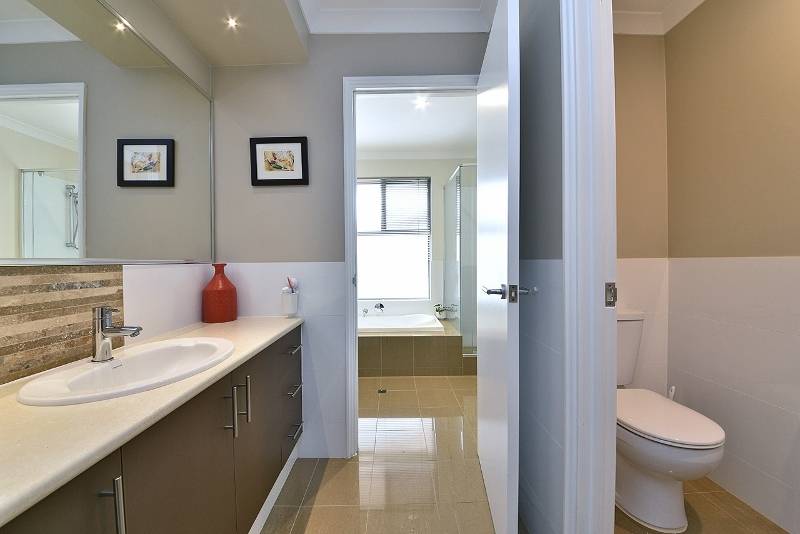 • Stylish 2nd bathroom with quality fixtures and fittings throughout, vanity, shower with glass screen and bath, plus an added guest powder room with own vanity and cupboards