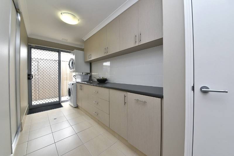 • Spacious laundry area with inbuilt bench and cupboards plus triple sliding door storage and separate linen cupboard