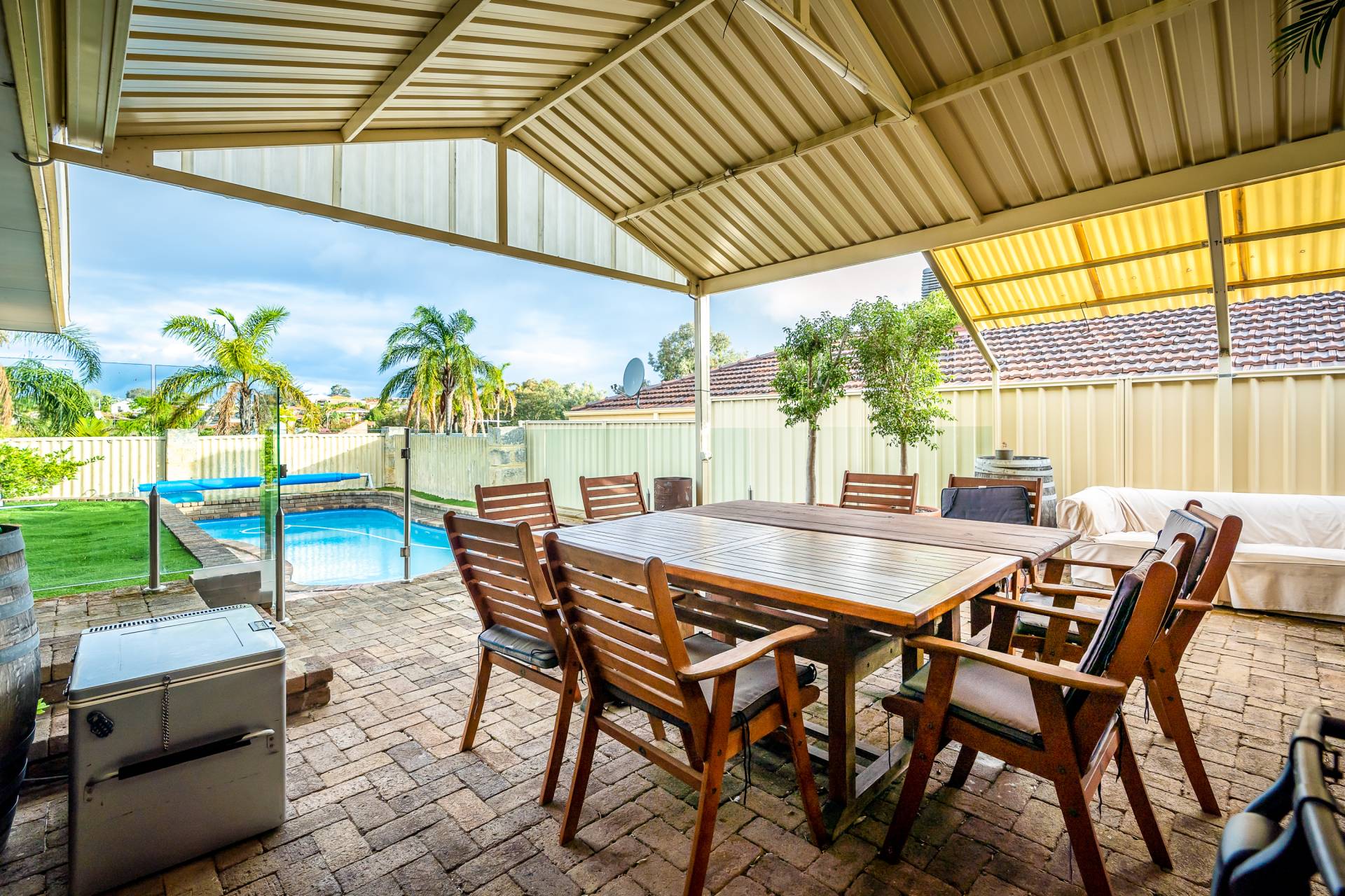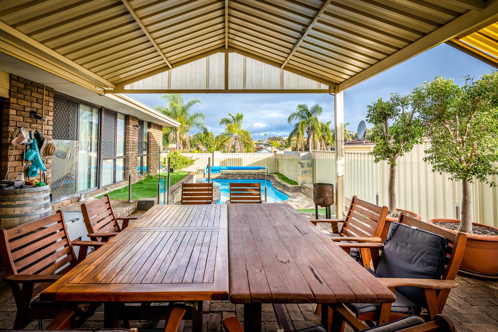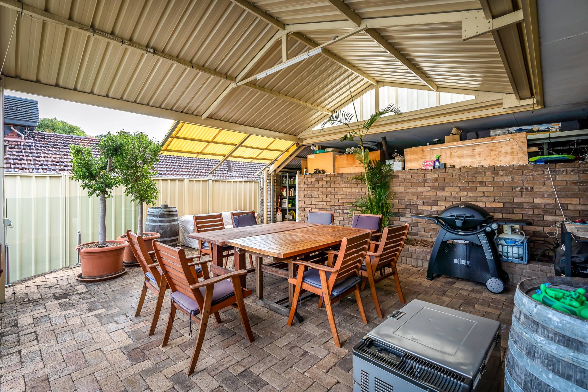- Huge undercover outdoor entertaining complete with a pitched pergola (its definitely worth mentioning that the outdoor area got a great breeze when the Wind comes up in the afternoon and was very pleasant and usable all summer )