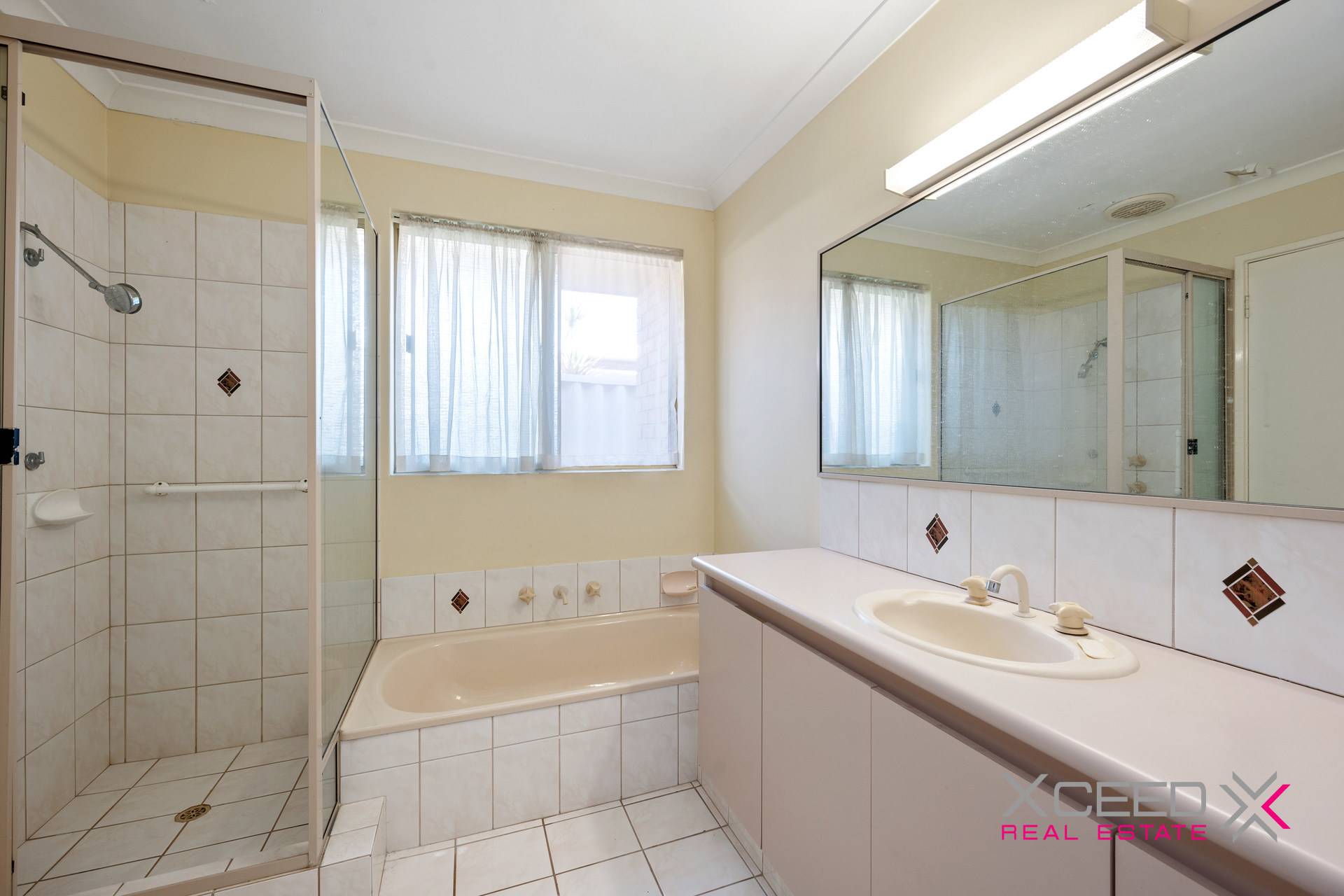 From here, access outdoors to a paved rear “vergola” entertaining area is rather seamless, with manual louvers allowing protection from the elements depending on the season and time of year. Back inside, all three bedrooms are carpeted for complete comfort – inclusive of a large front master ensemble with a walk-in wardrobe and semi-ensuite access into a practical bathroom, comprising of a shower and separate bathtub to keep everyone happy.