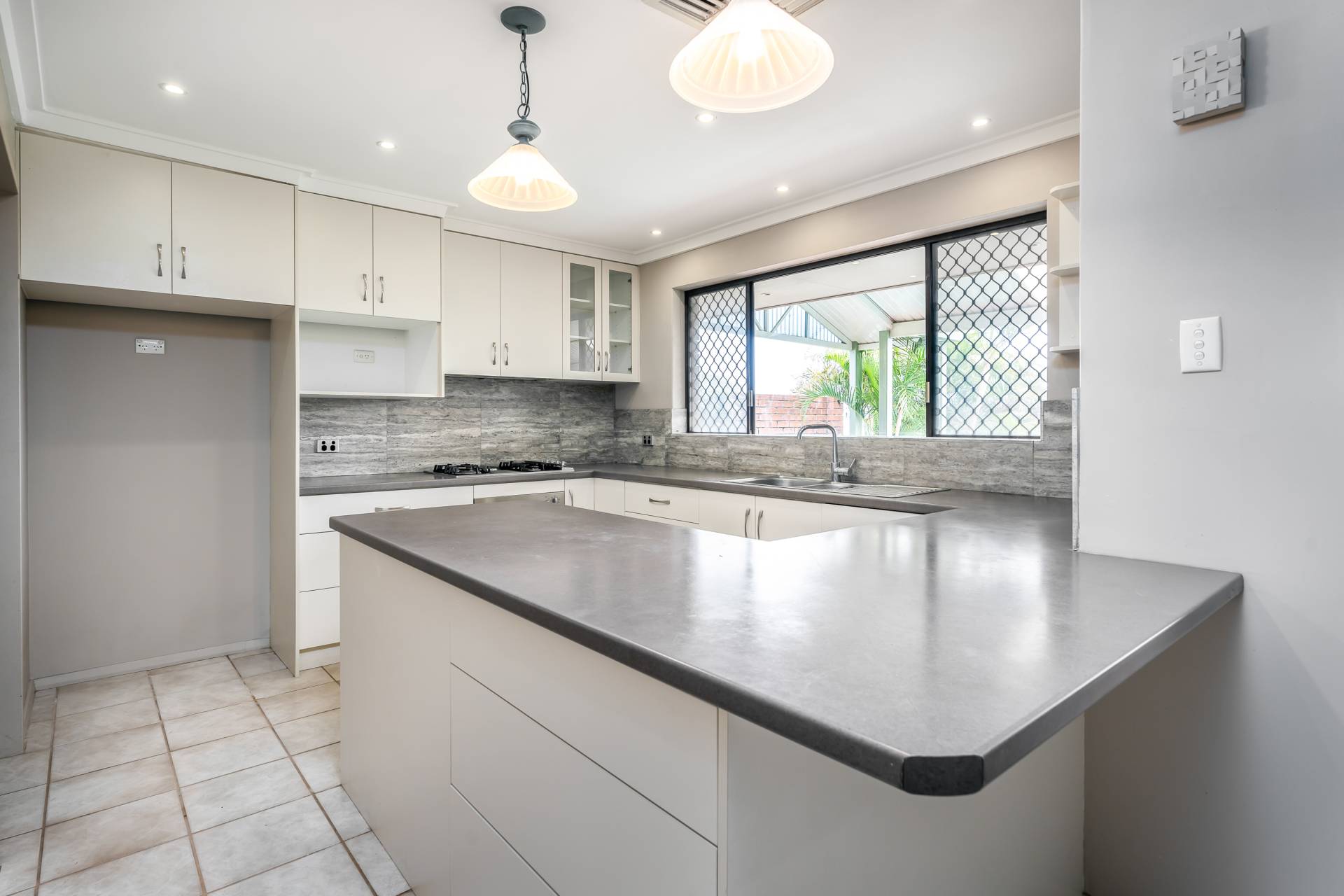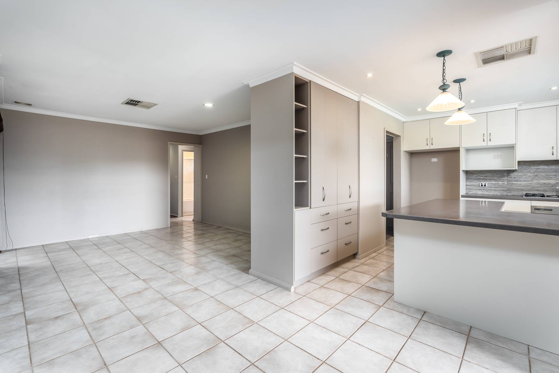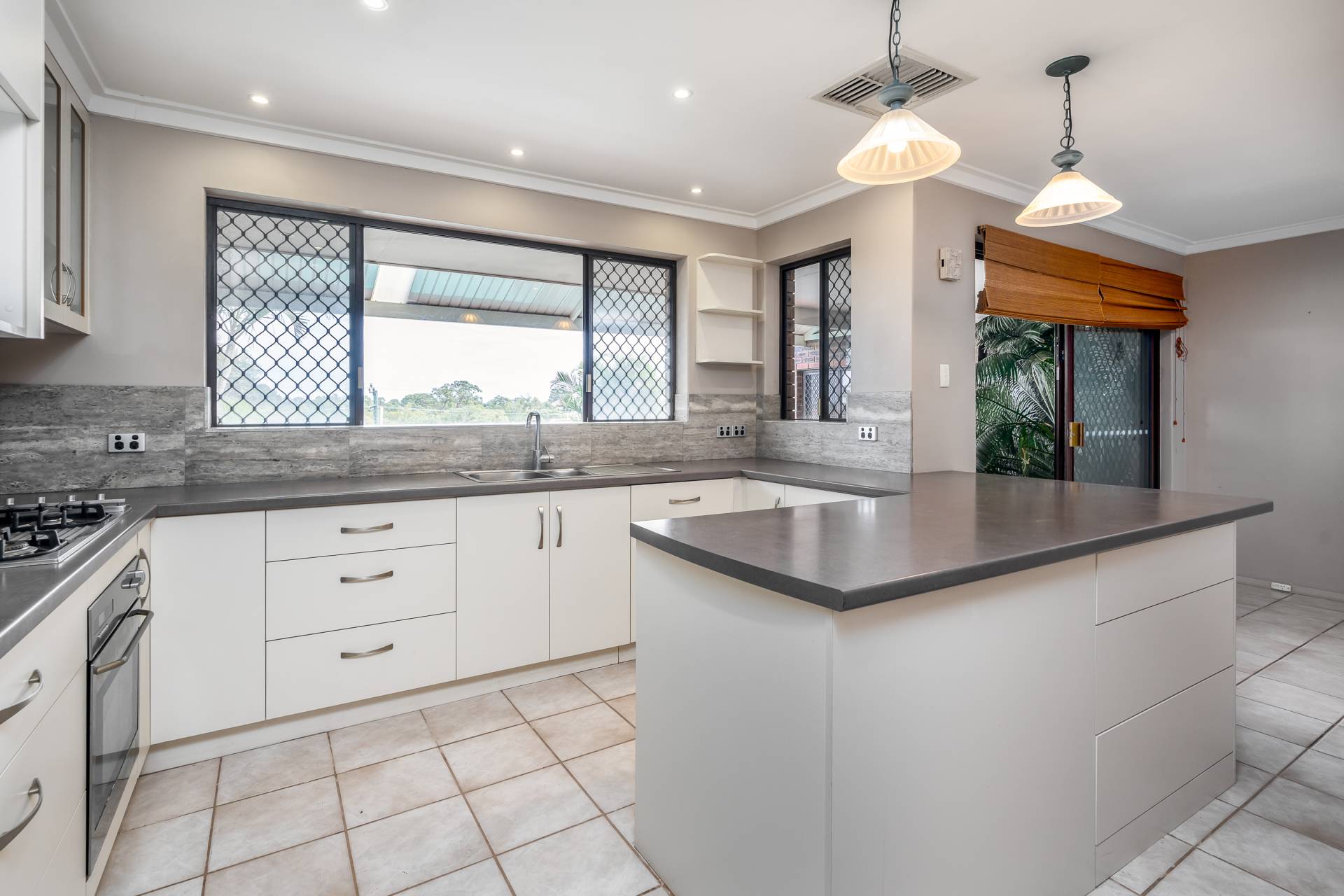 - Open plan kitchen and meals with an abundance of storage space and a view of the outdoor entertaining and pool area