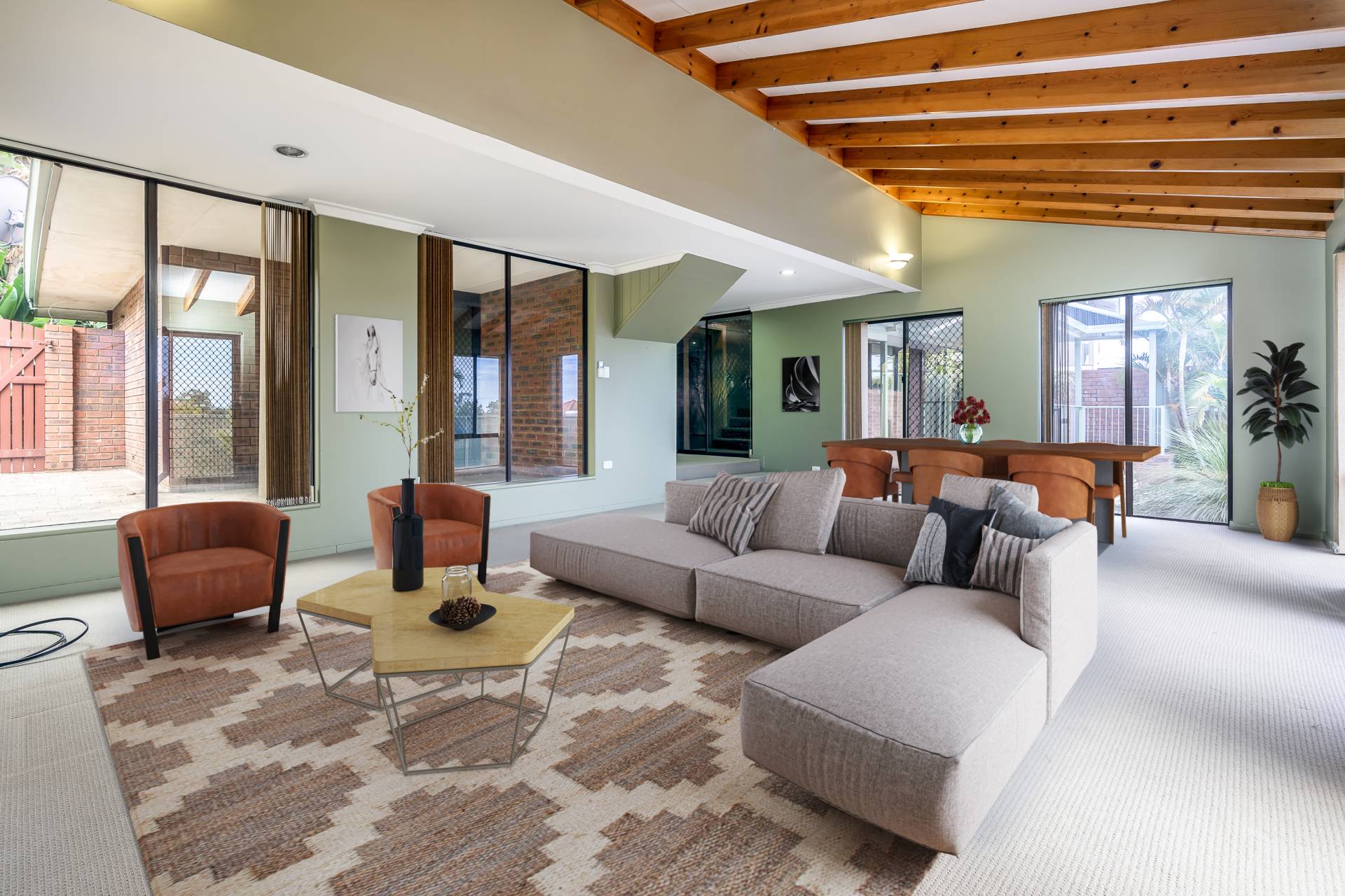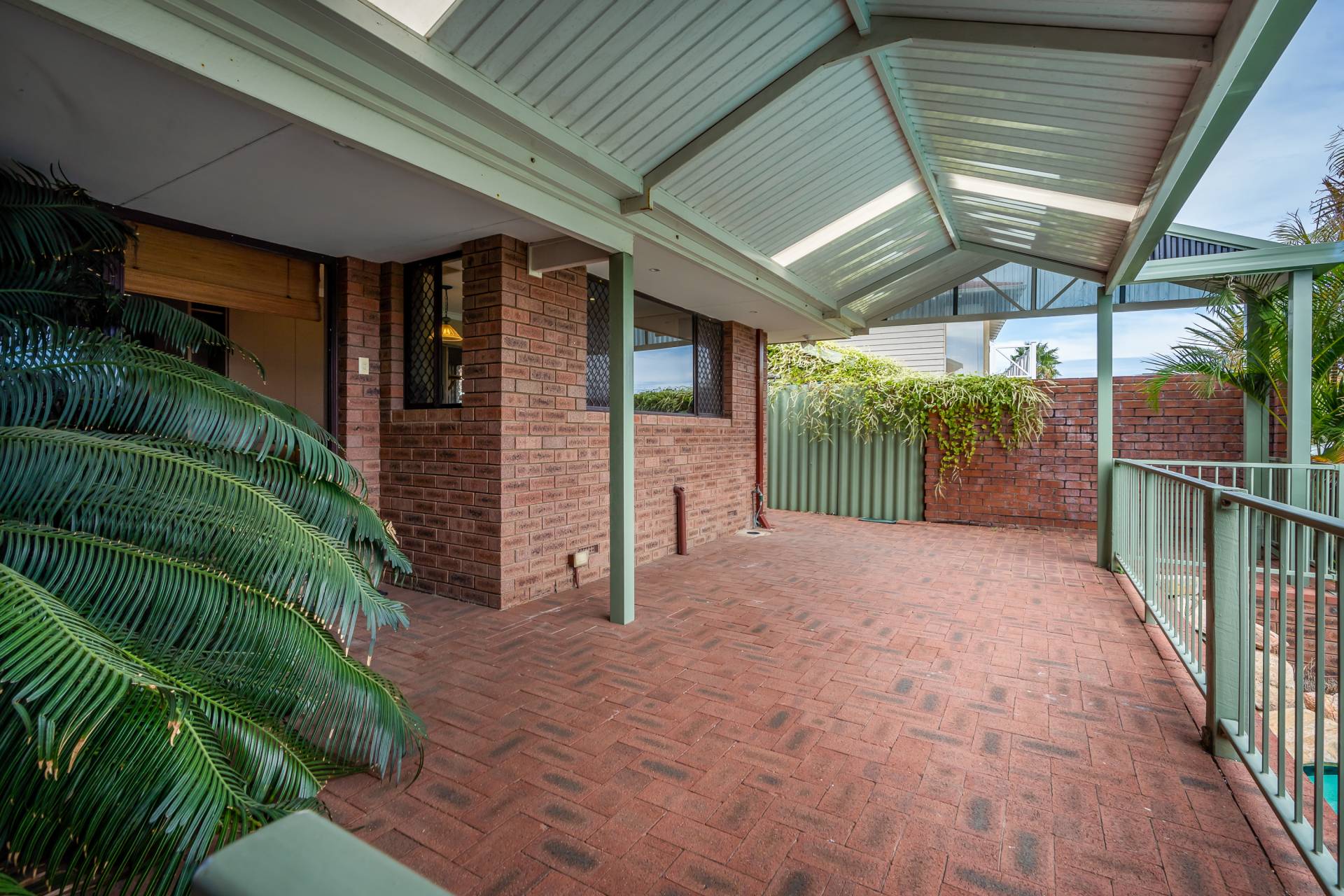 - Undercover outdoor entertaining with pitched pergola