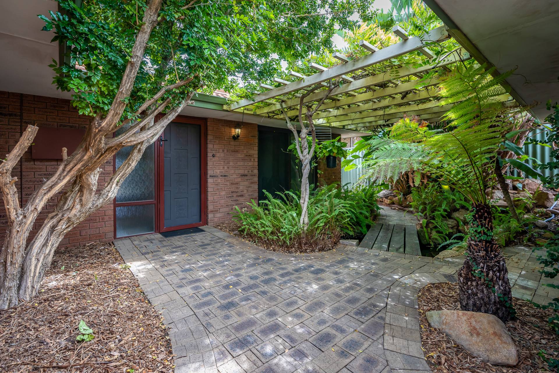 - 2nd courtyard that wraps around to the secure front of the home complete with tropical plants and a beautiful pond