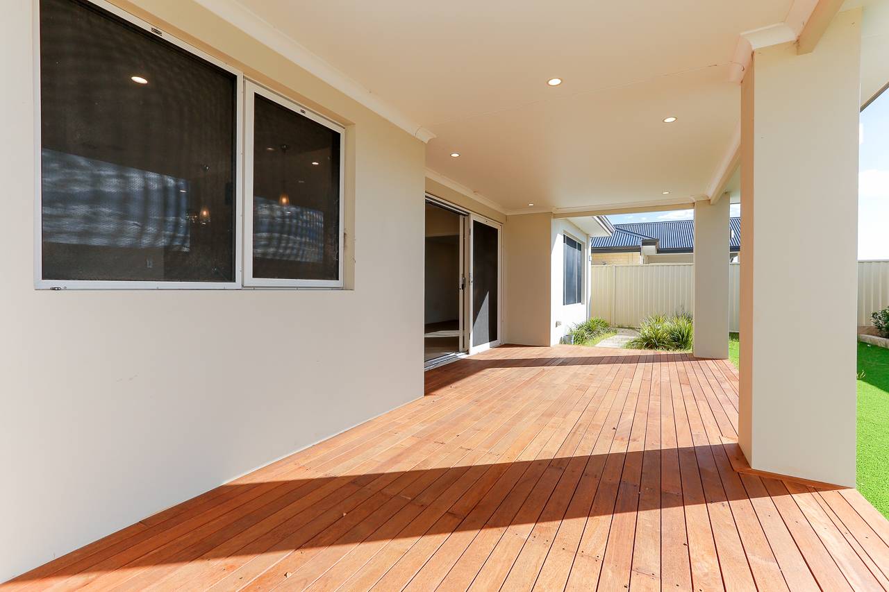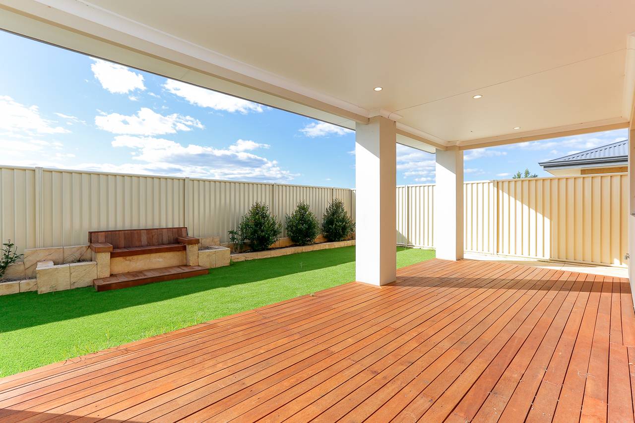 - Low maintenance rear yard with artificial turf, decking and entertainers pitched patio