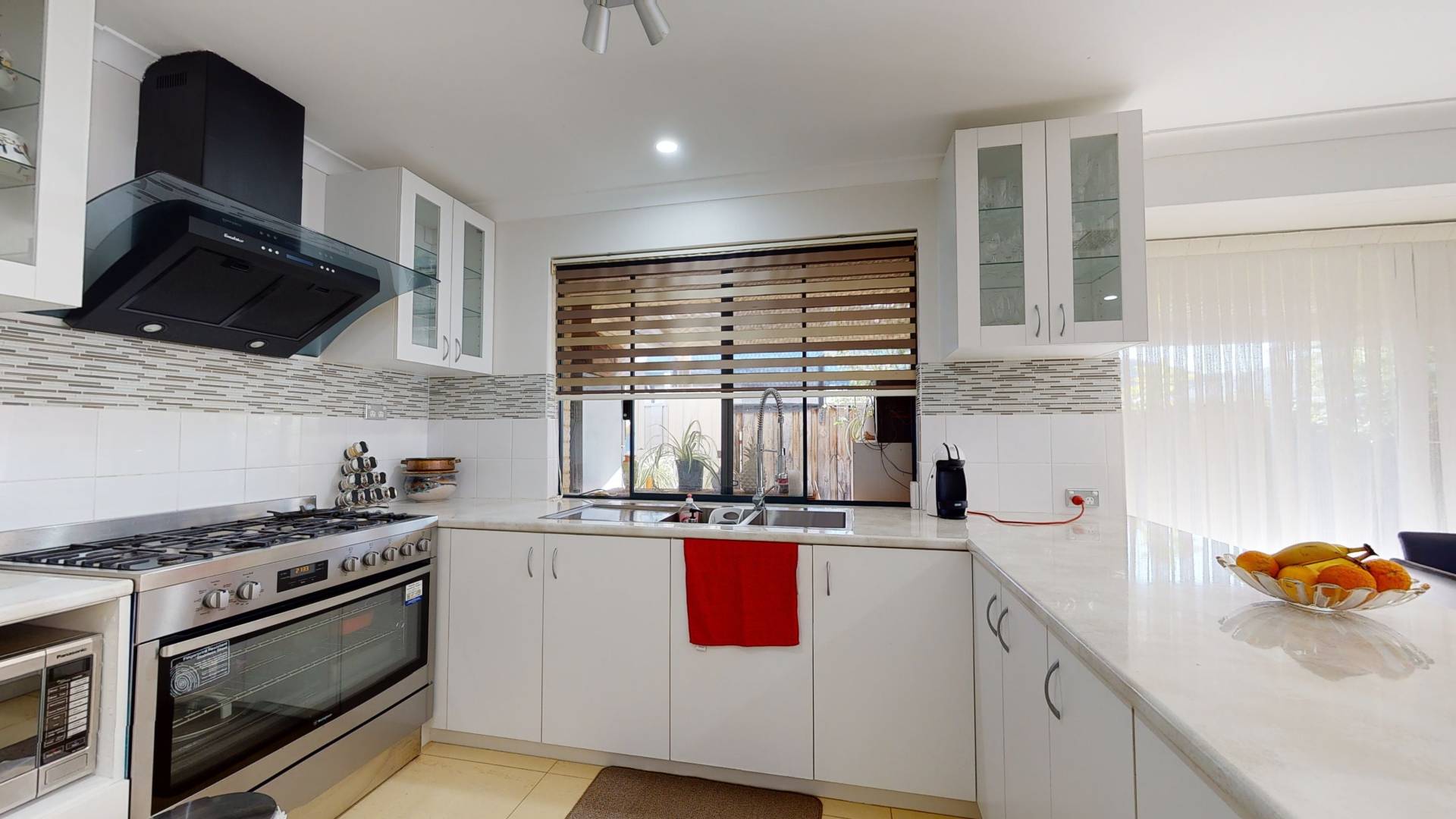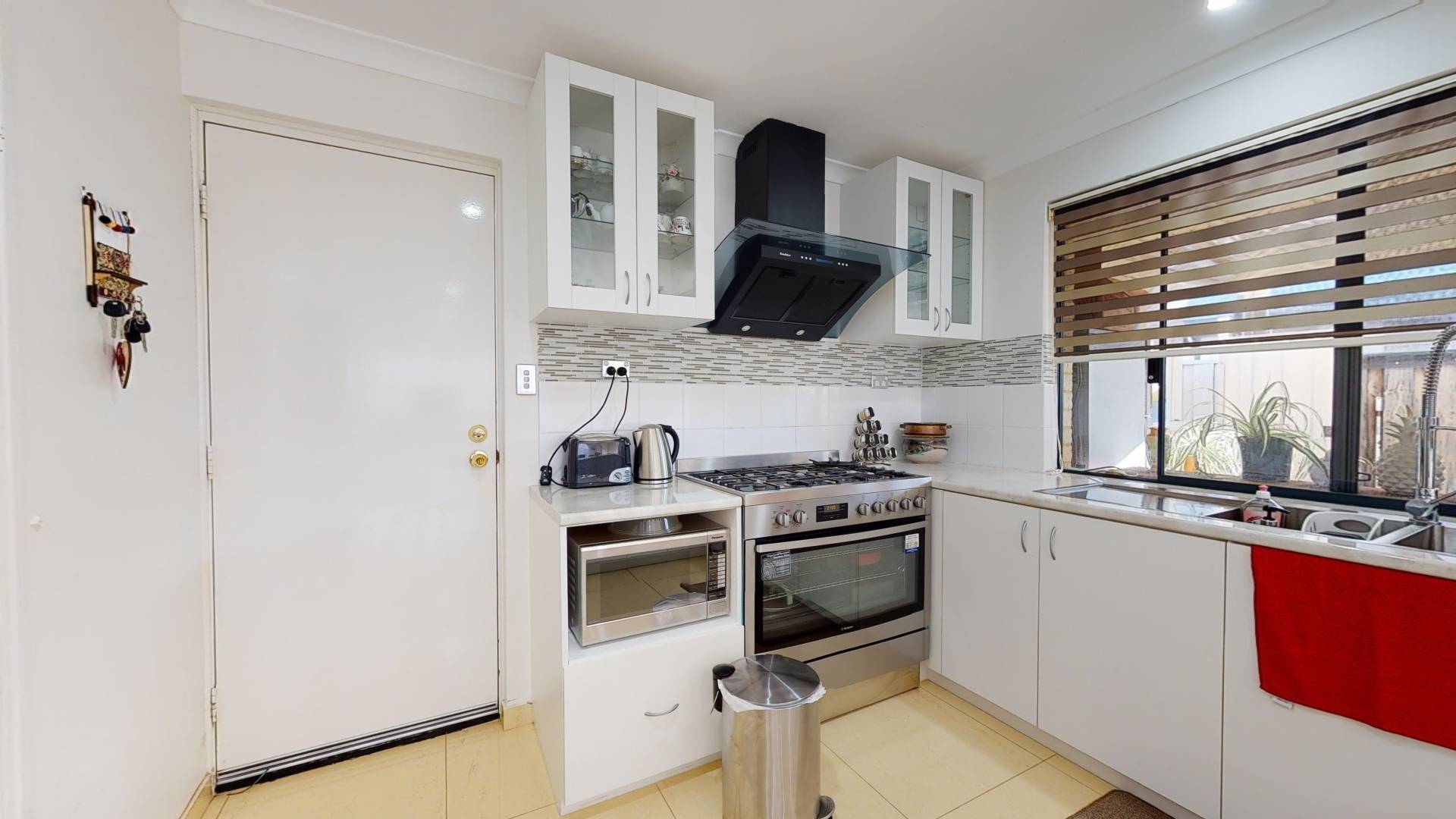 - Kitchen with 900mm free standing stainless steel stove/oven & rangehood, pantry & shoppers entrance to garage