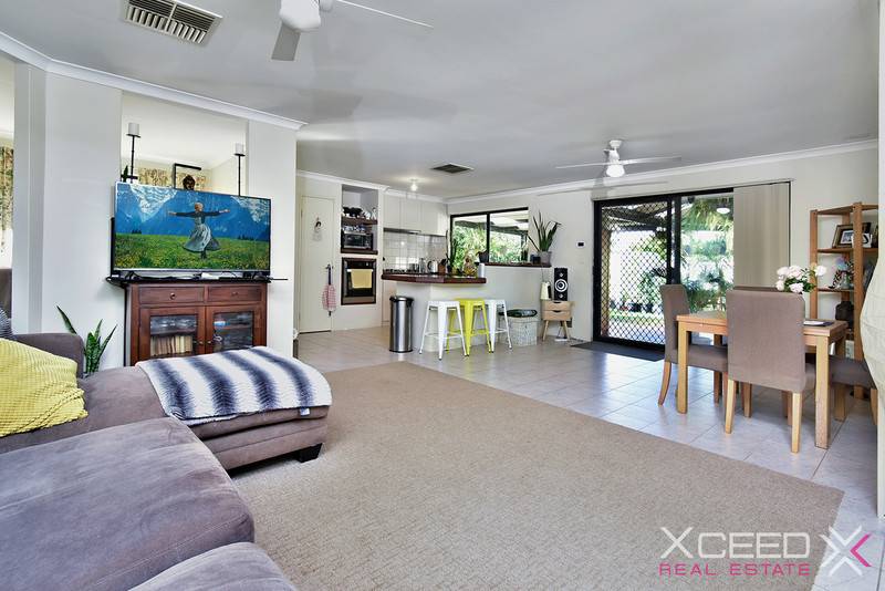 The entrance to the home provides access to the formal lounge room, leading through to the sizable kitchen, dining and main living area. The indoor-outdoor flow is great thanks to the pleasant patio area and well-kept backyard, perfect for unwinding and catching a good bit of sun.