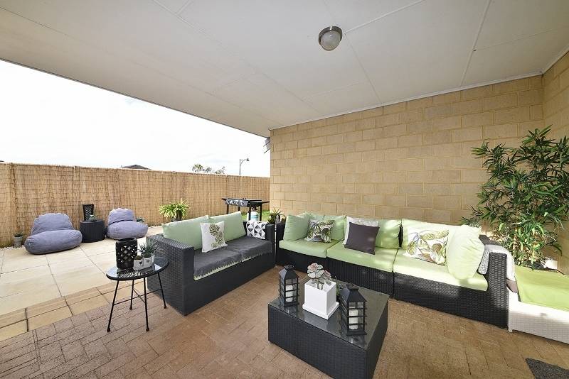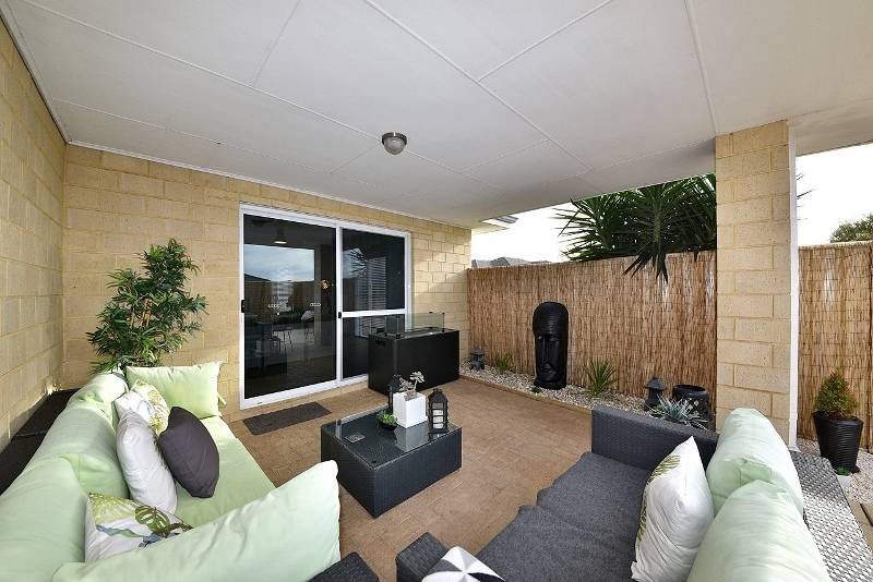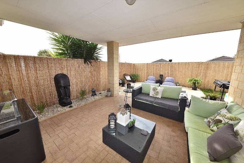 Outdoor alfresco entertaining area overlooking easycare backyard