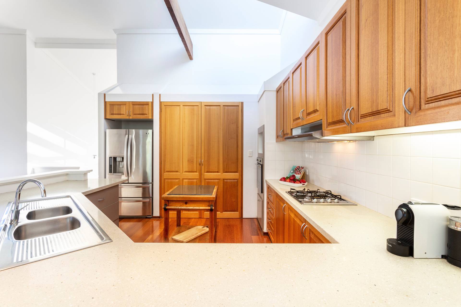 The private parents' level, located at the front of the home, boats a 5-star hotel sized bedroom, with generous walk-in robe and a fully renovated ensuite bathroom, that opens onto a private courtyard retreat.