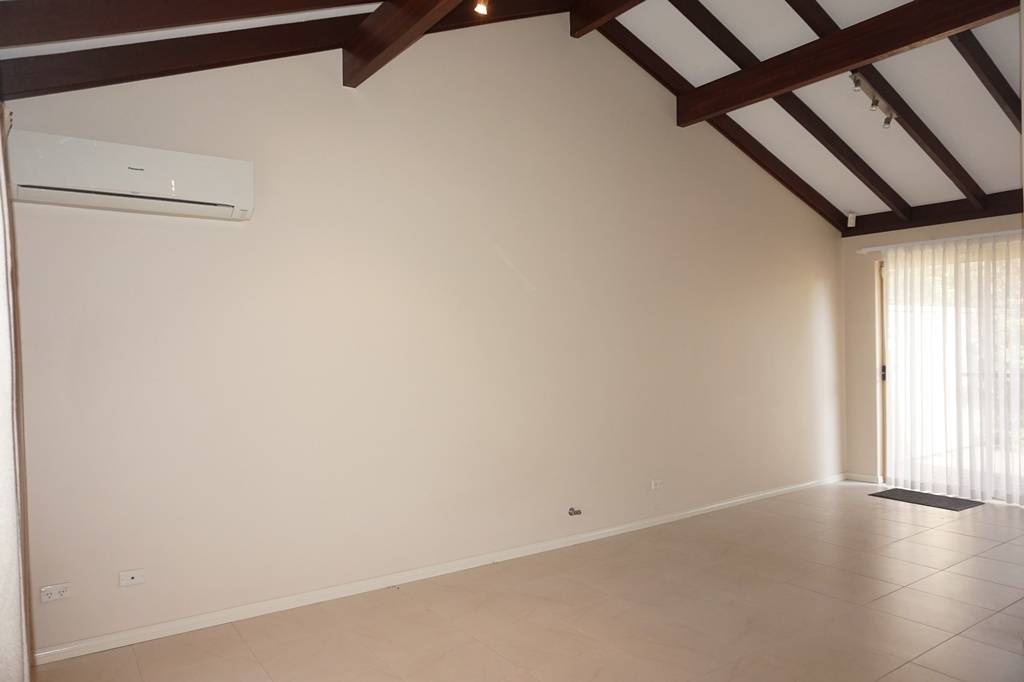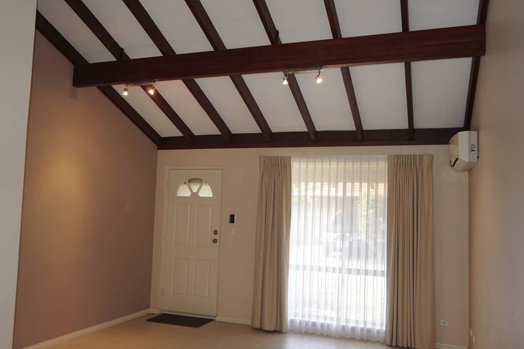 - High pitched ceilings with exposed jarrah beams to dining and living areas