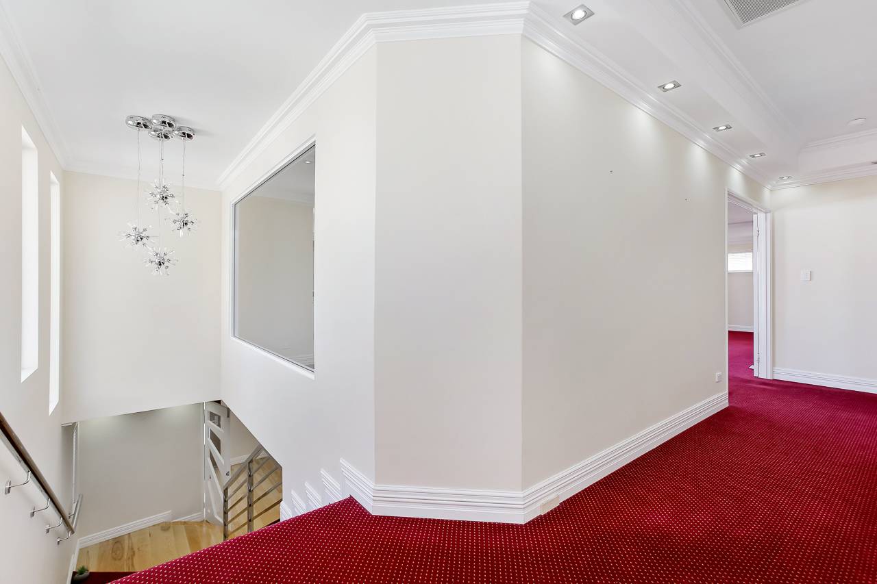 Contemporary inside and out, this grand home enjoys a functional floor plan that keeps the sleeping quarters and main living area together on the upper level. Downstairs, a massive carpeted games room is spacious enough to host a full-size billiards table, whilst an extensive home office or library is a fantastic place to work from and even extends outdoors to a covered terrace for low-maintenance backyard entertaining.