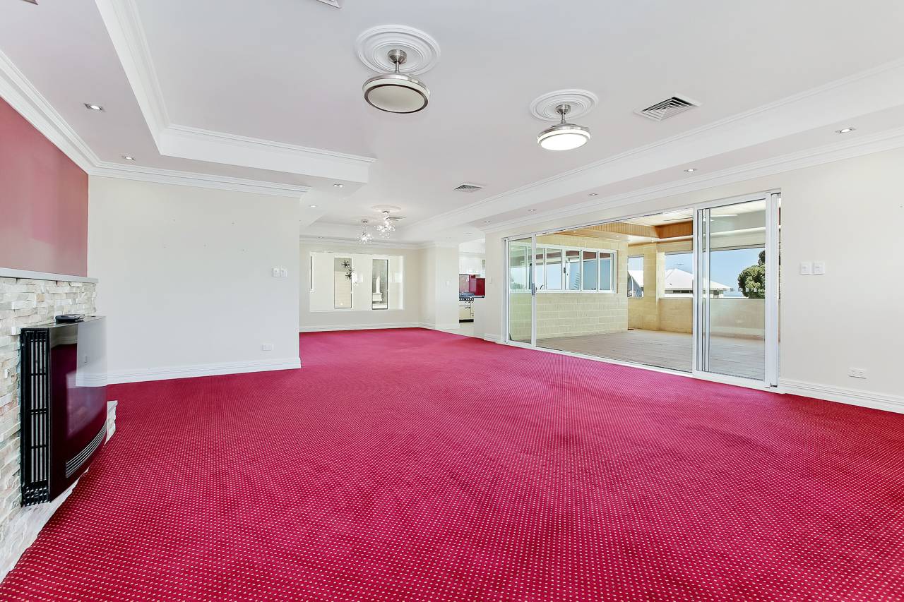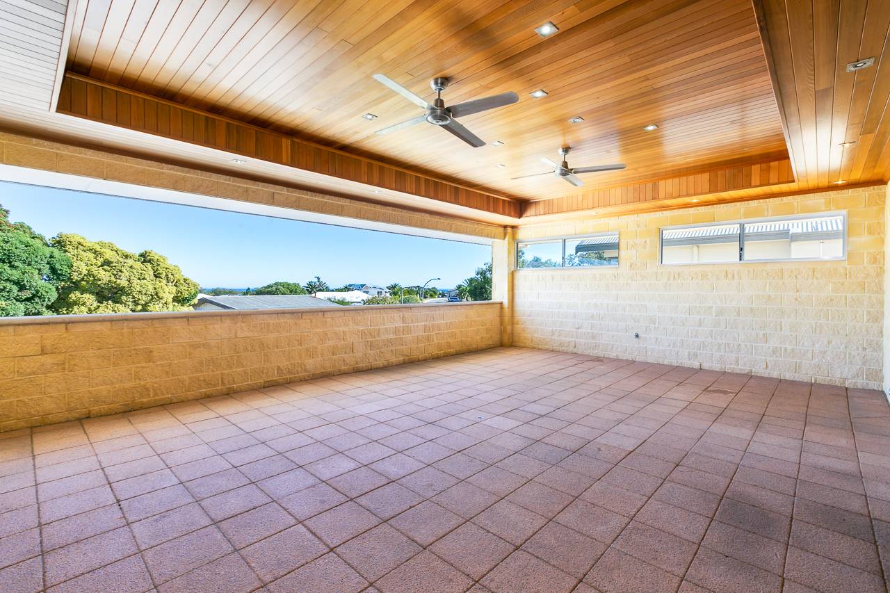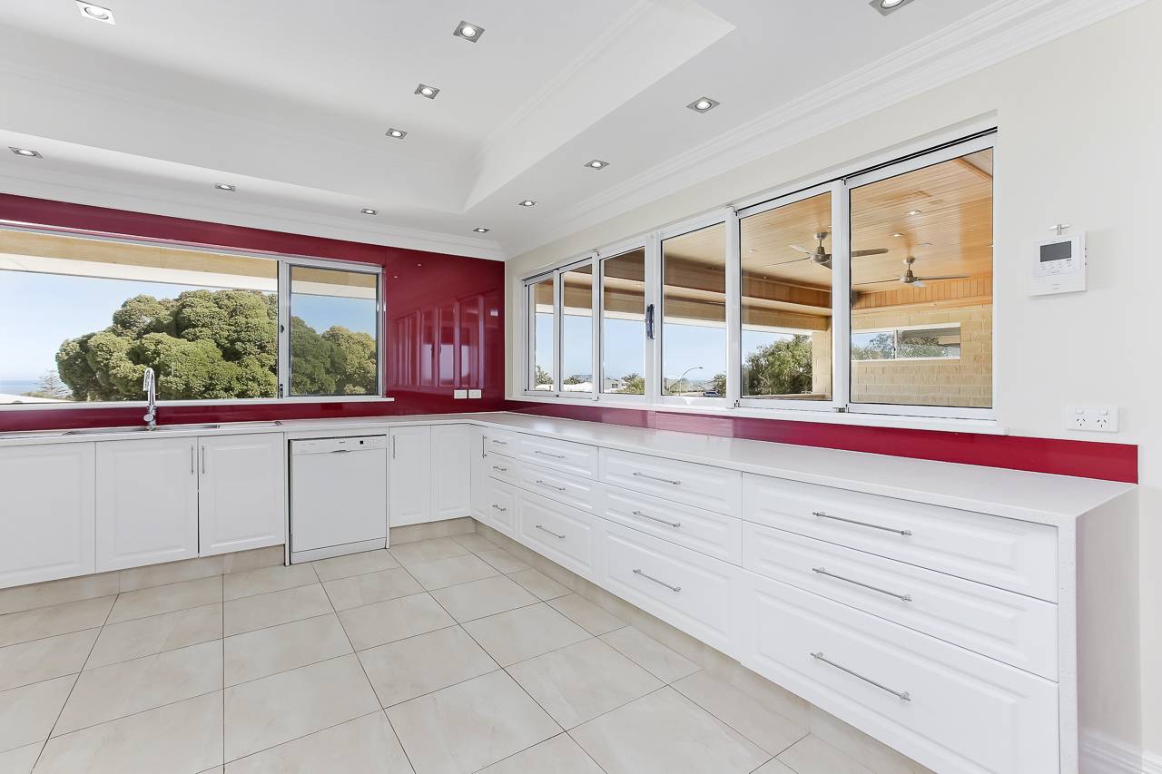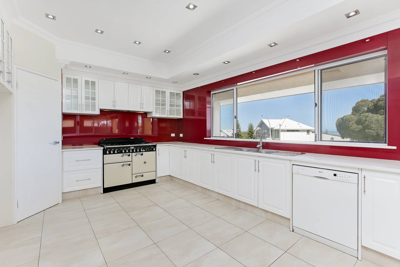 A purpose-built theatre room includes a surround-sound system and all the trappings of a movie cinema. Double doors reveal an open-plan design that incorporates the family, dining and kitchen areas and extends, via stacker doors, out to a fantastic cedar-lined alfresco balcony with a mesmerising sea vista all the way south to the ports of Fremantle.