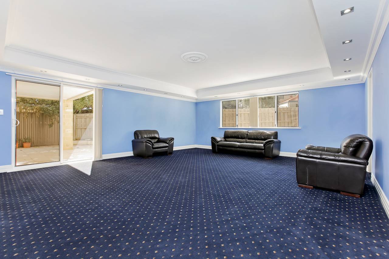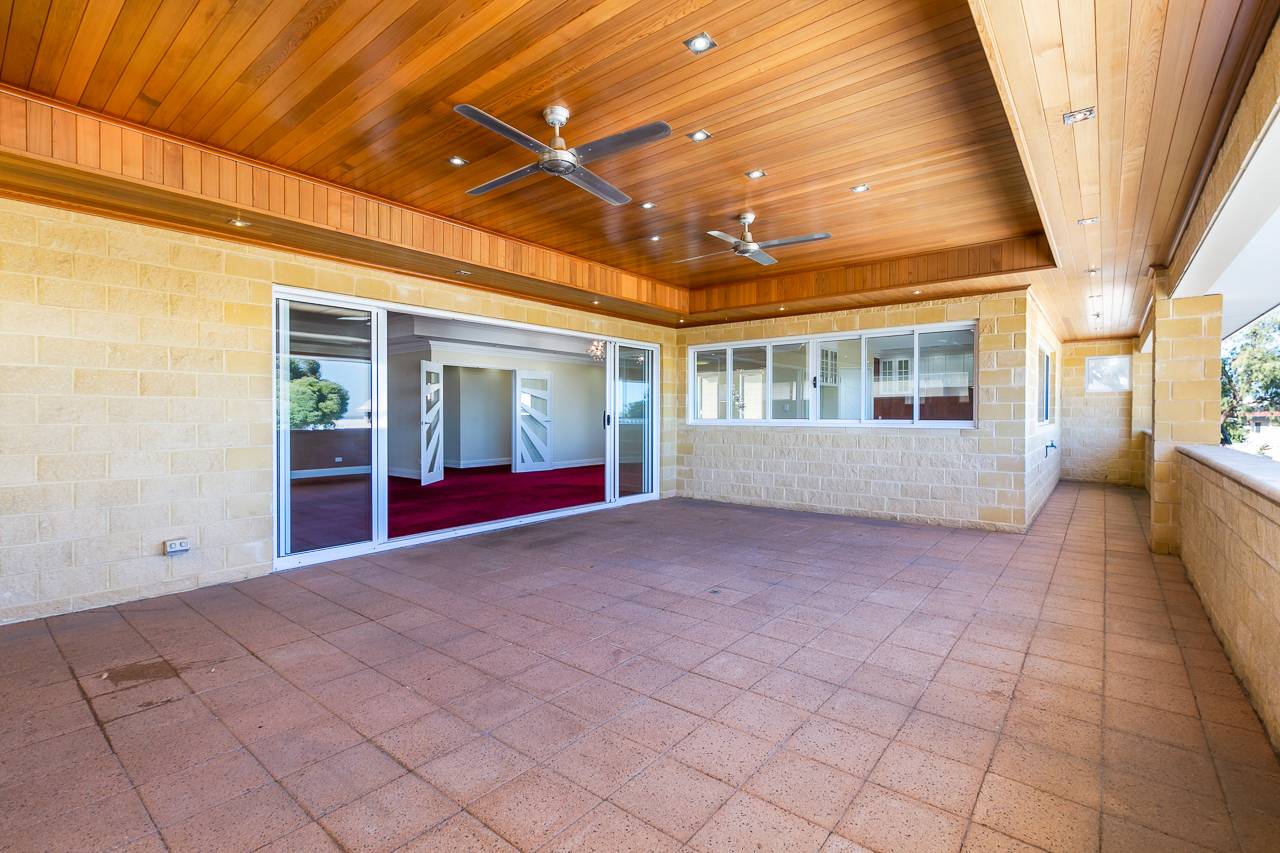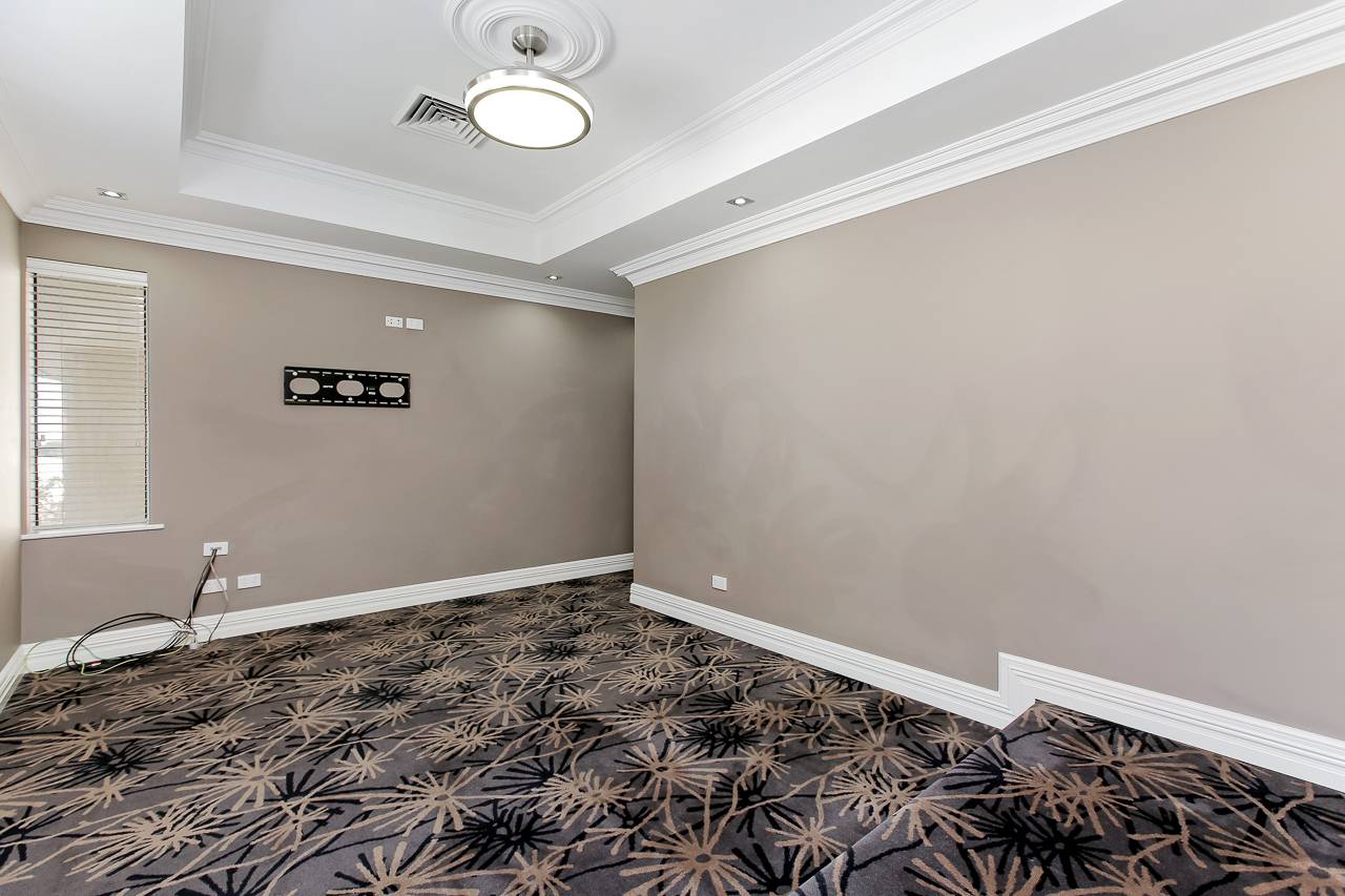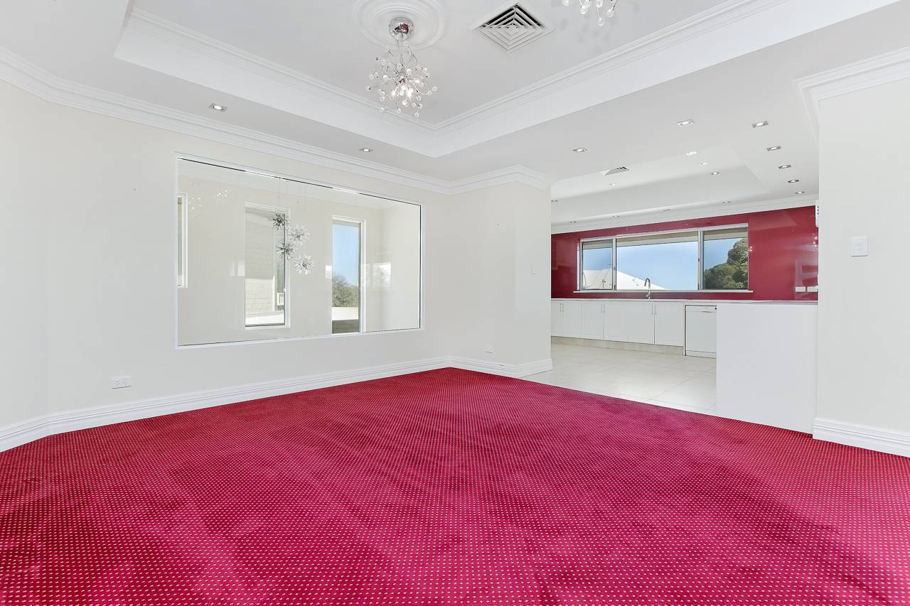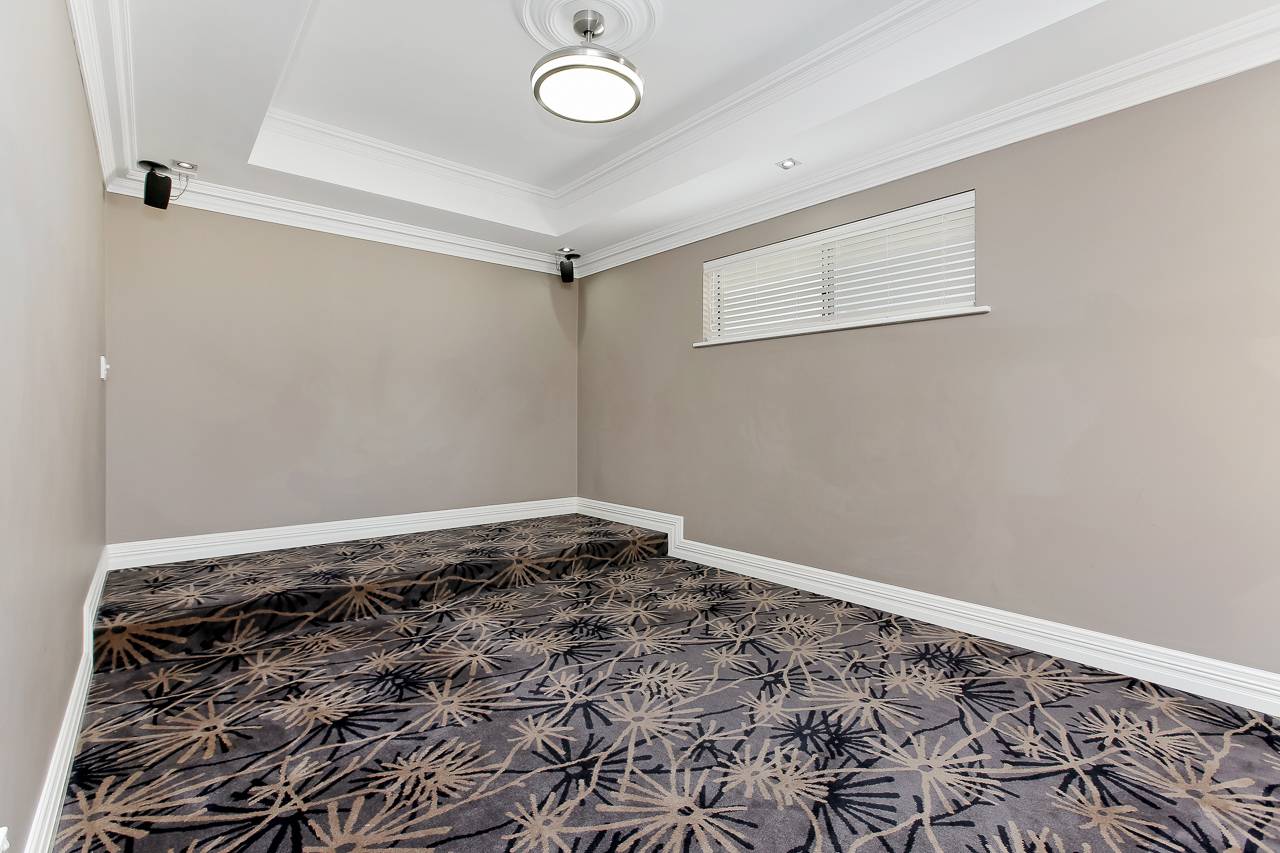 A purpose-built theatre room includes a surround-sound system and all the trappings of a movie cinema. Double doors reveal an open-plan design that incorporates the family, dining and kitchen areas and extends, via stacker doors, out to a fantastic cedar-lined alfresco balcony with a mesmerising sea vista all the way south to the ports of Fremantle.