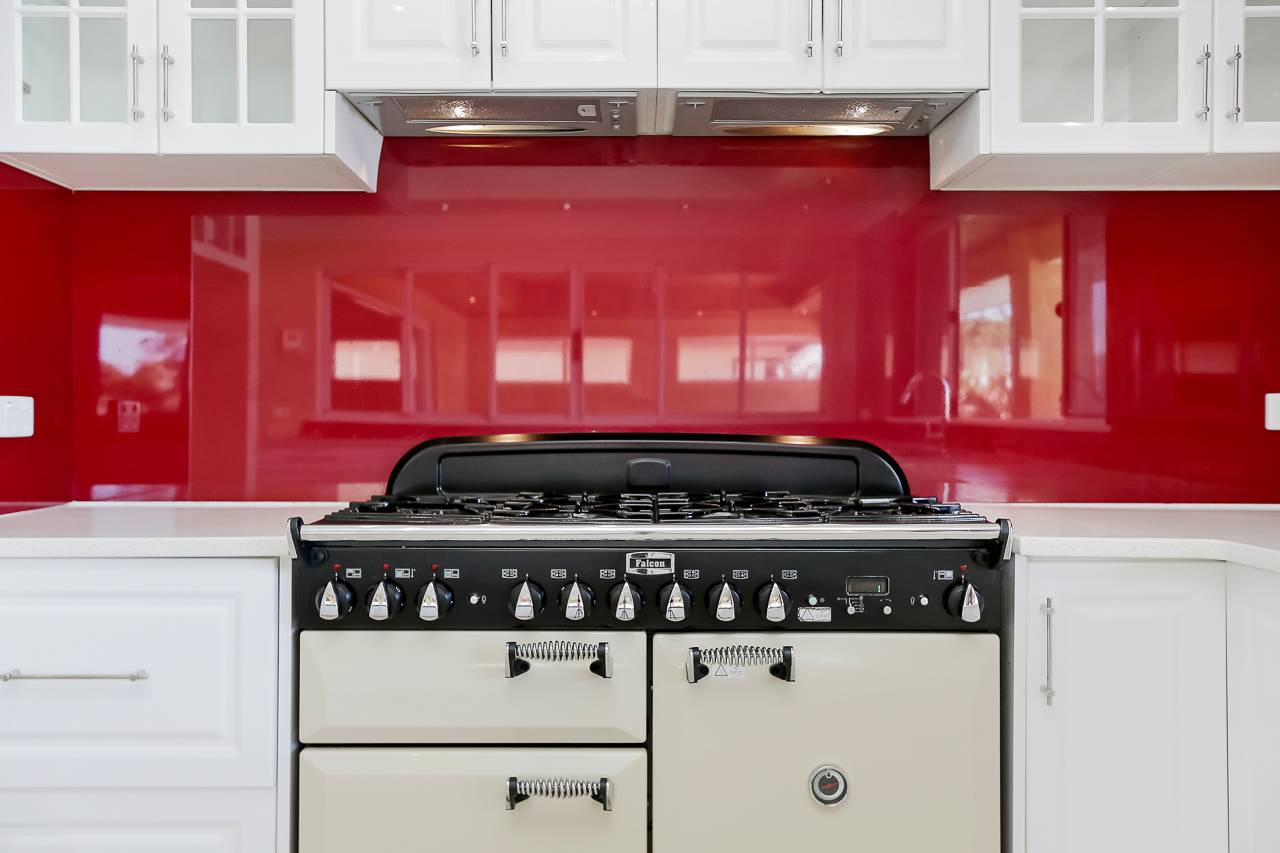 - A massive kitchen with a vista of its own, a walk-in pantry, stone bench tops, a double sink, ample storage space, a stylish six-burner Elan gas cooker, electric ovens, a Bosch dishwasher and a servery window to the excellent alfresco balcony with two ceiling fans, external down lighting, soundproof flooring, power and a gas barbecue connection