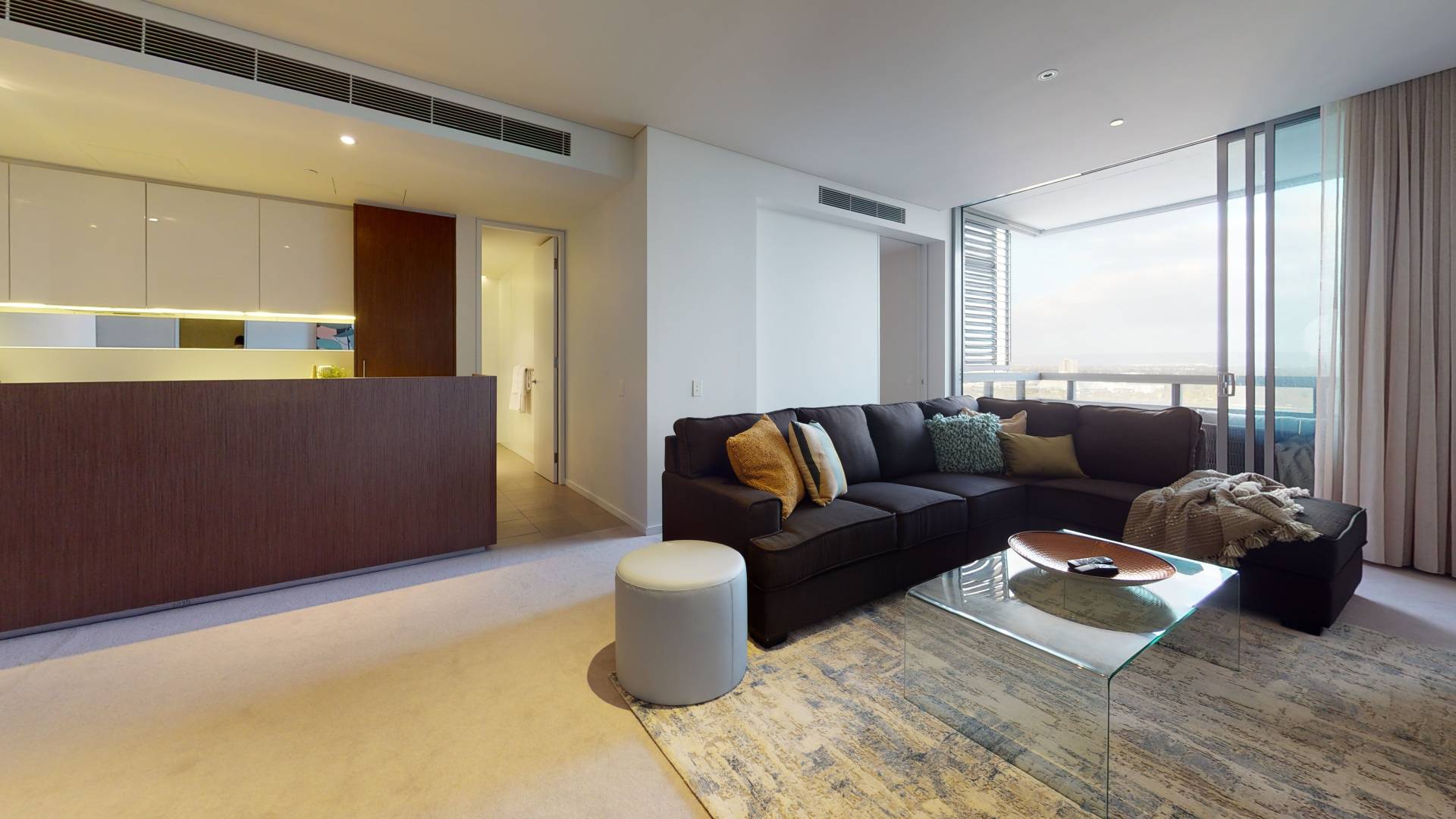 Perched high on level 23, this stunning 2 bedroom plus study, 2 bathroom apartment showcases impeccable finishes throughout along with only the best complex amenities. Boasting an infinity lap pool, hot tubs, fully equipped gym, residents lounge and theatre room.
