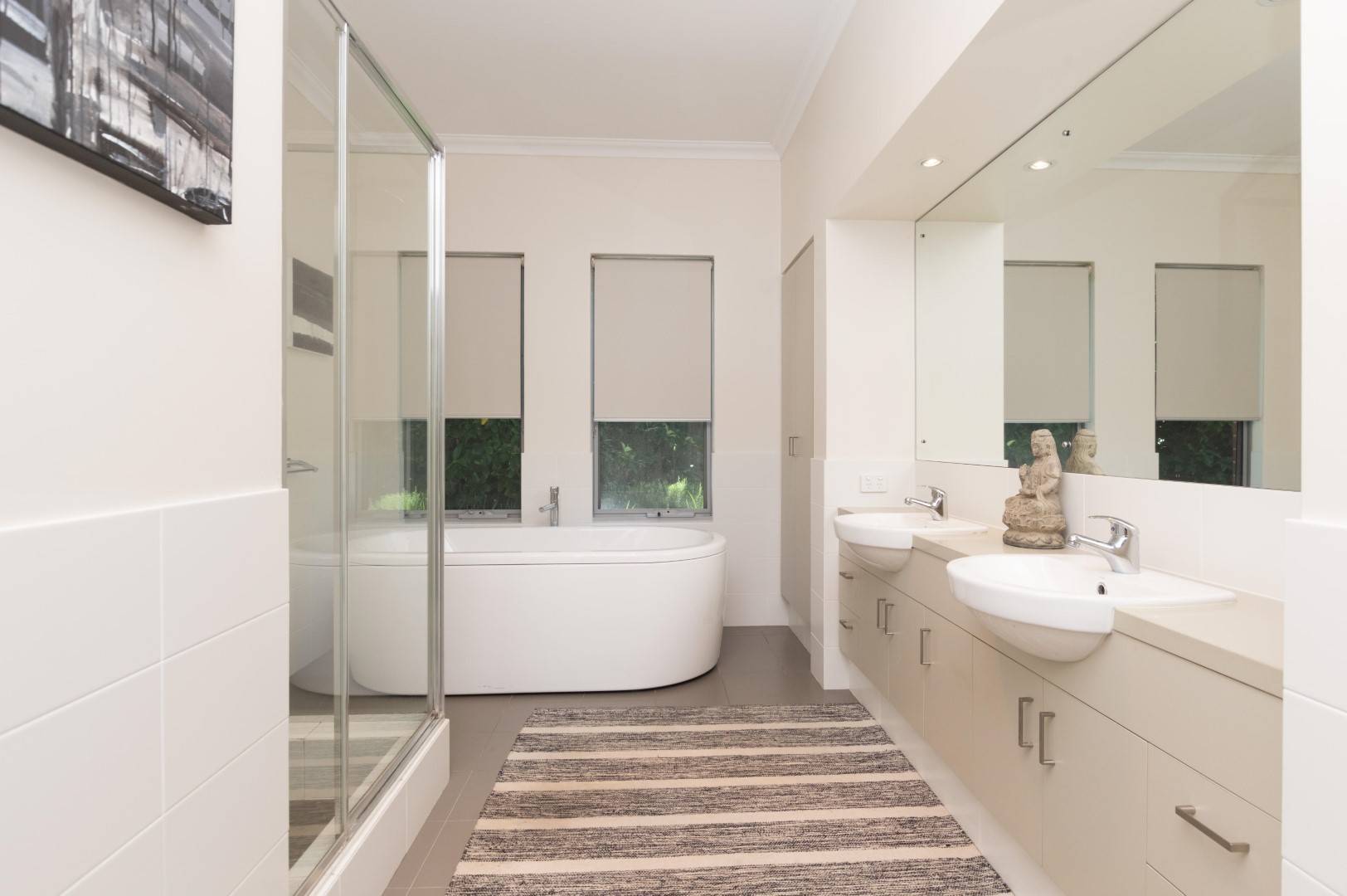 Ensuite including glass screened shower, free standing bath, double vanity, and separate w/c