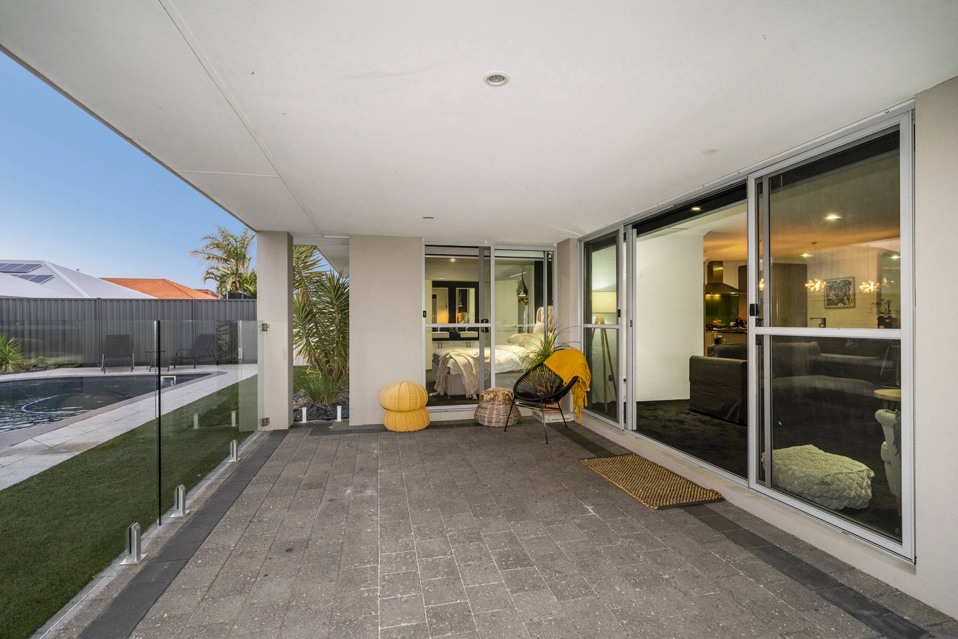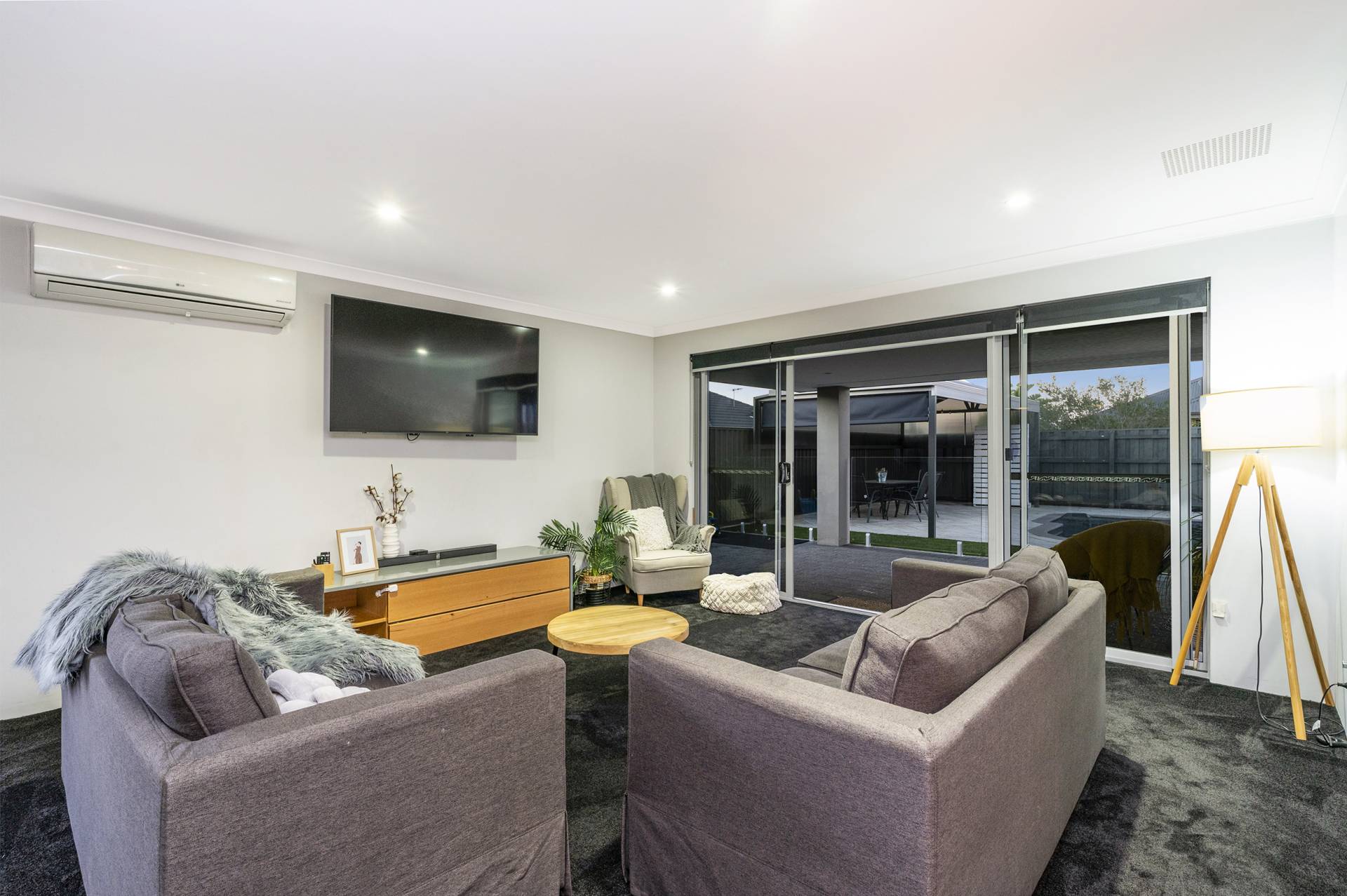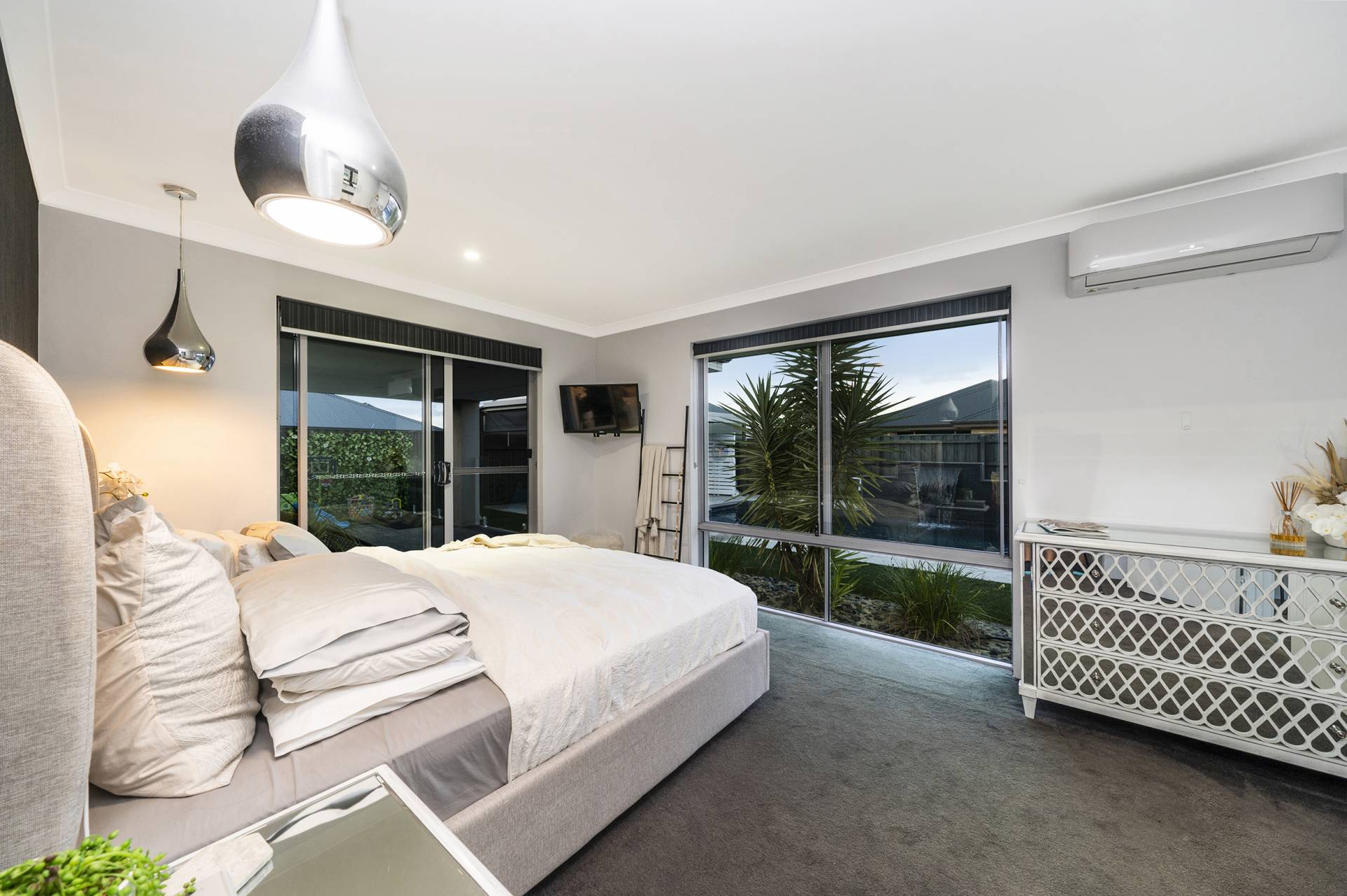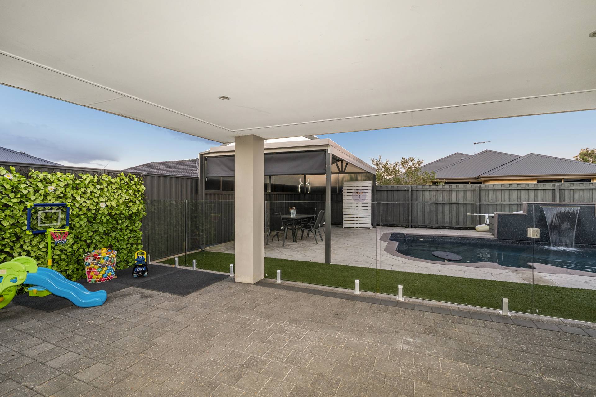 The expansive open-plan living and dining area is a beautiful space where you'll be able to enjoy your pool vista all year round. Double sliding doors open up to the spacious alfresco area, capturing the resort-style pool, cascading water feature and freestanding gazebo.
