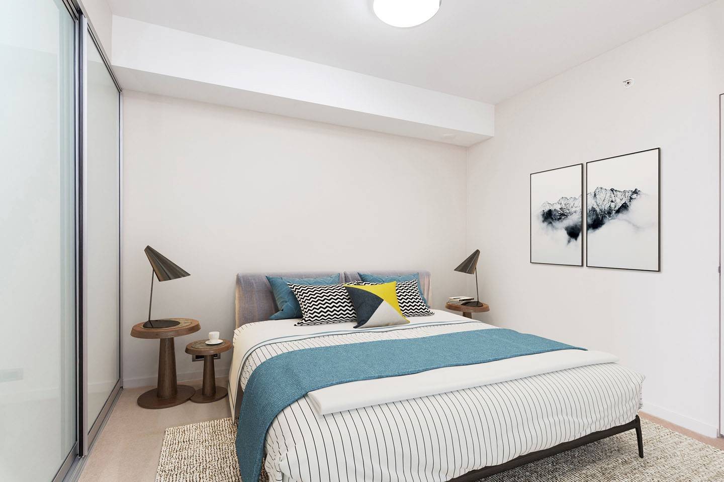 • Two bedrooms with built-in double robes, the master with floor-to-ceiling corner window and balcony access