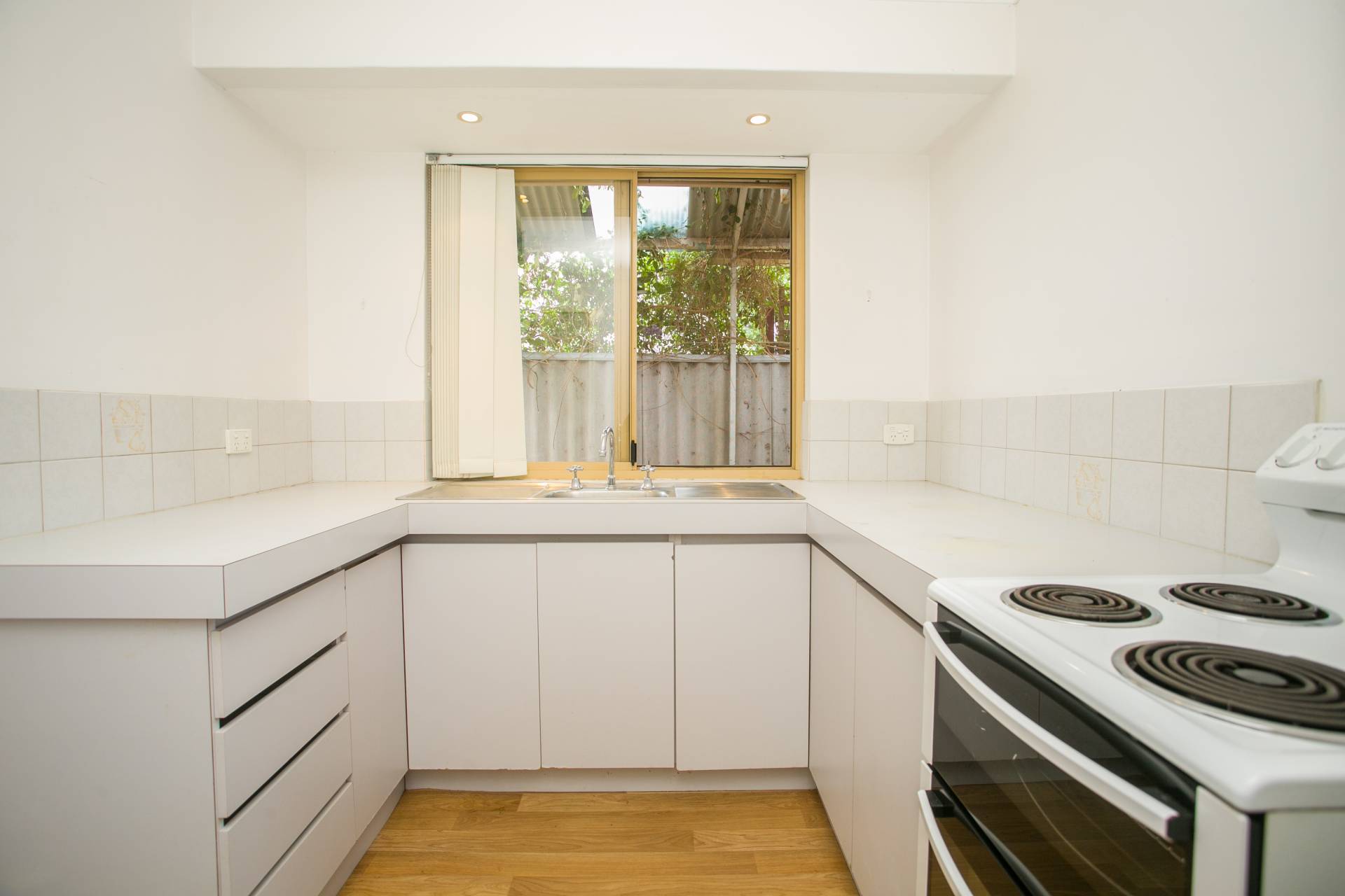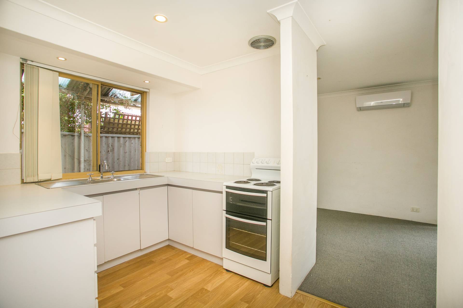 A carpeted open plan family lounge and dining room which allows for space for a study if you wish is fitted with a split system air-conditioning unit and is sundrenched by the daylight. The central kitchen has a 4-burner electric stove and electric oven.