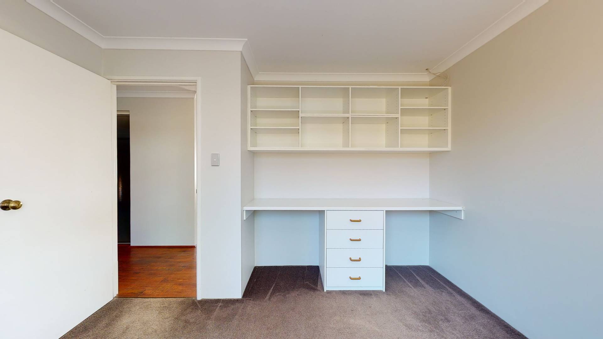 4th bedroom is equipped with build in study furniture
