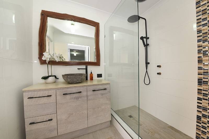 Fully renovated ensuite with extra-large walk in shower (with screen,) stone benchtop, full height tiling, deluxe fixtures and fittings plus separate WC