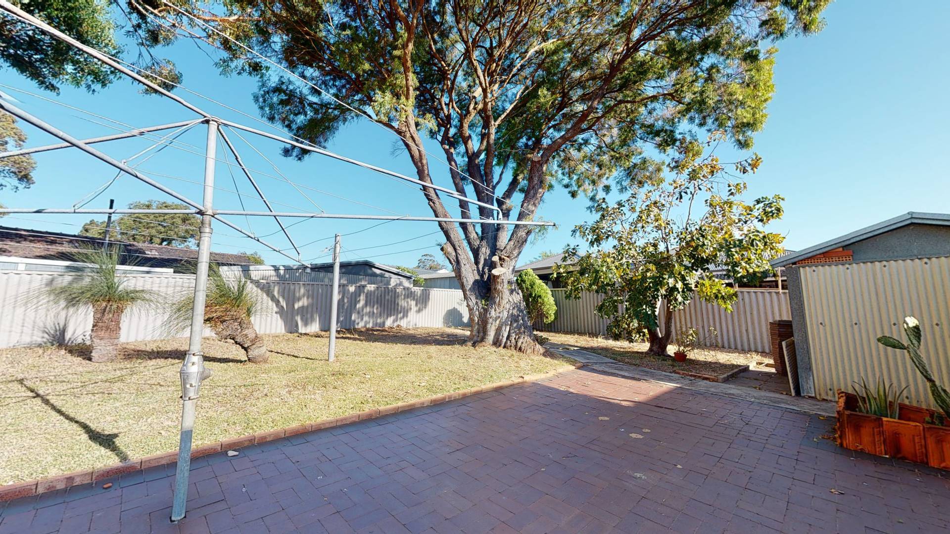 The drive thru garage has an automatic roller door. The generous sized private backyard includes a patio, two sheds & established trees.