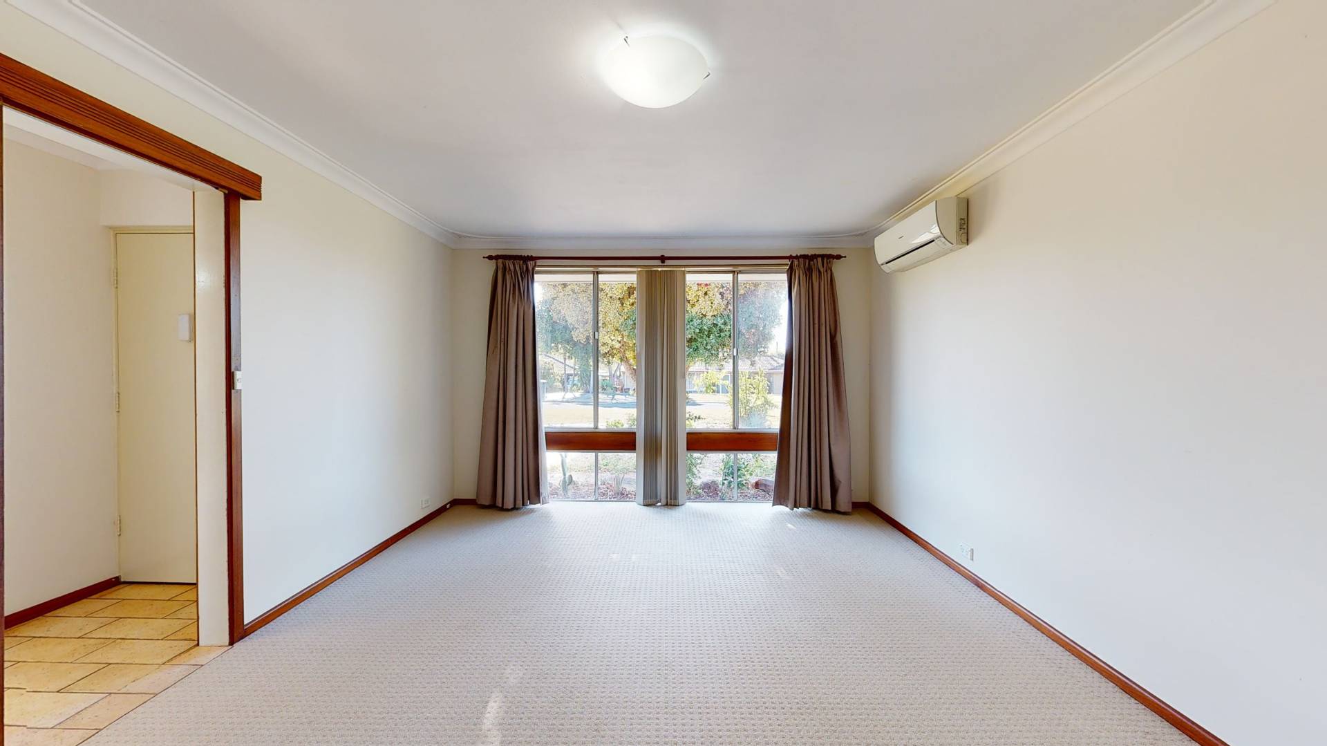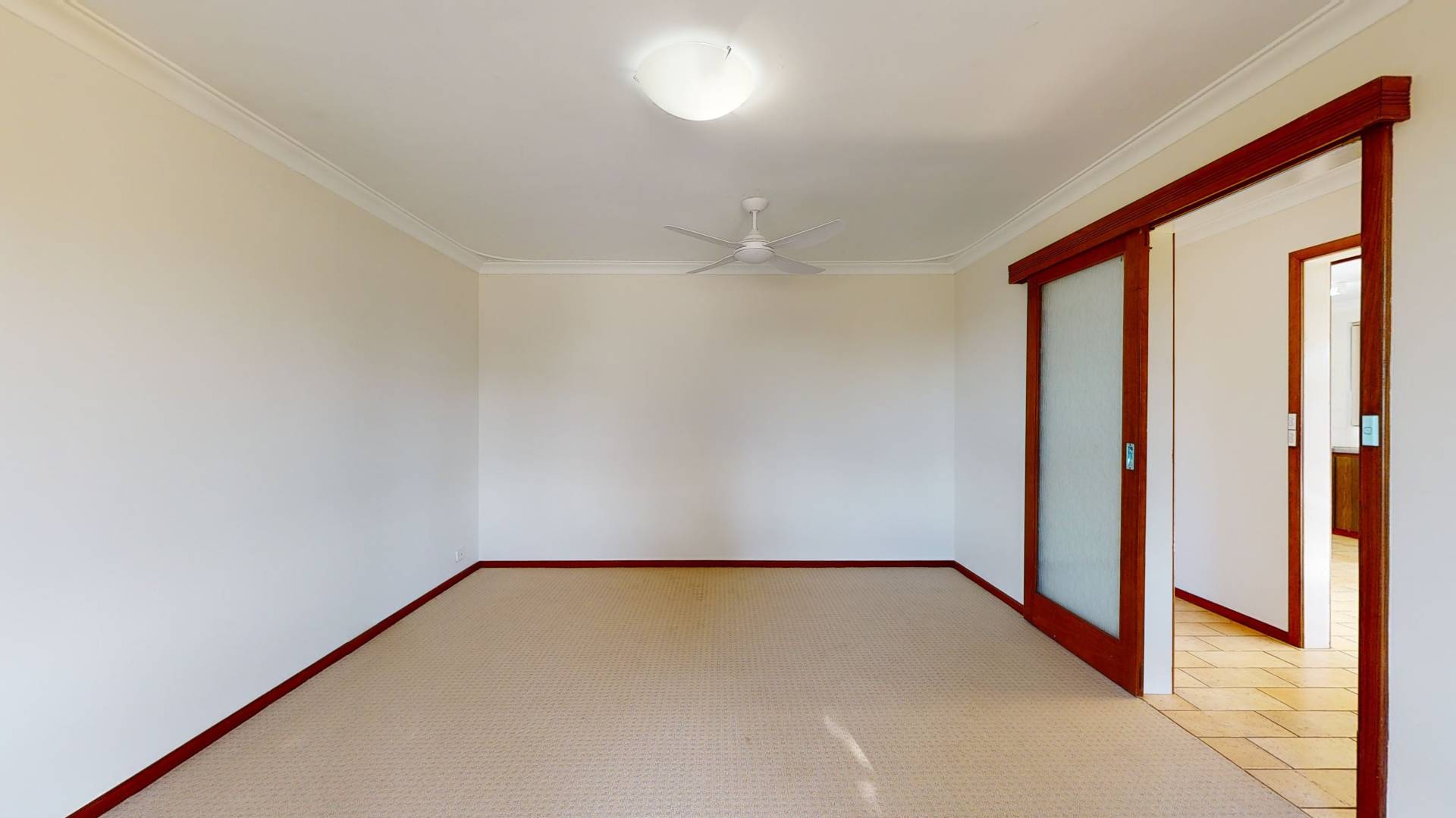 The bedrooms have a good separation from the living areas. The master bedroom includes a wall of built in robes. There are near new carpets to all bedrooms and to the lounge room. The other rooms, including hallway, are tiled.