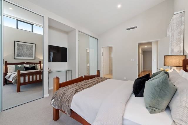 The hub of the home consisting of the kitchen, dining, and family room, it is spacious and overlooks the privately set alfresco, lawn and garden area. The chef’s kitchen is both large and well-fitted with quality appliances, walk-in pantry, dishwasher, generous bench space and plenty of cupboards. The theatre room is towards the rear of the home and can be closed off by the glass double doors.