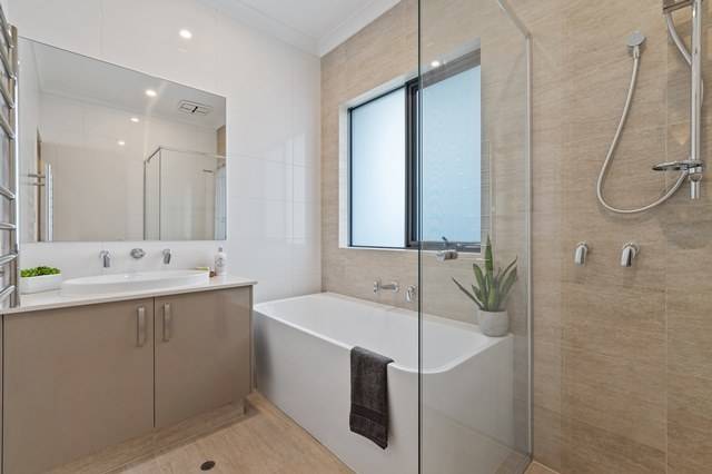 To the front of the home, the master suite is generous in size and beautifully appointed. You will appreciate this naturally light space which features large windows, dual built-in robes, ensuite bathroom with floor to ceiling tiles, heated towel rail and large shower.