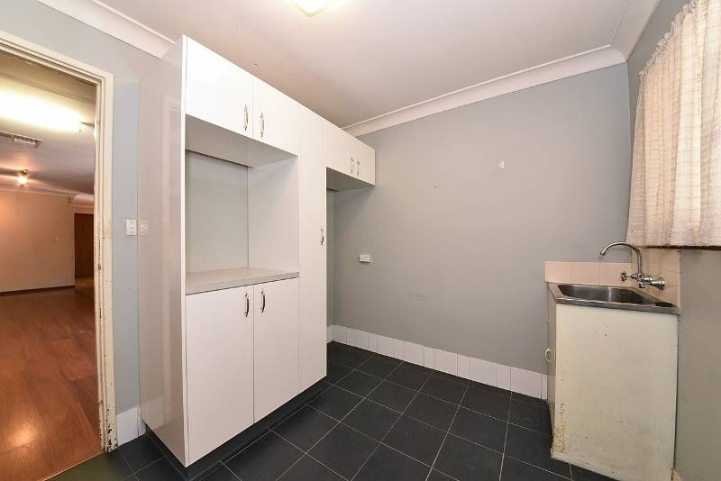Spacious laundry with inbuilt cupboards and bench