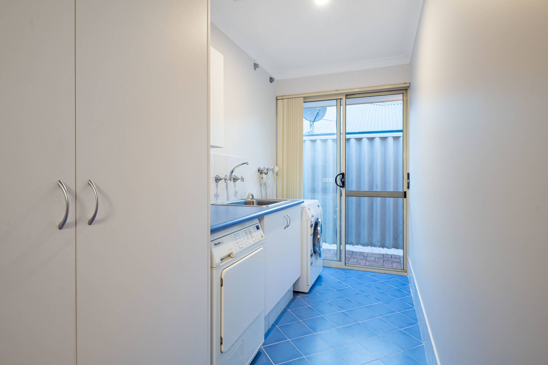 - ample storage, bench space and outdoor access for a drying area