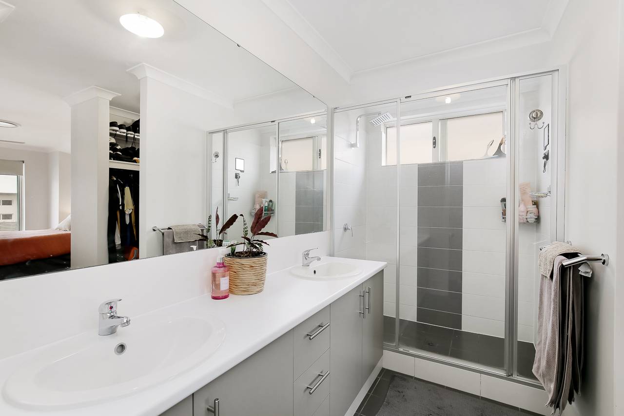 Large Master bedroom with a large walk-in robe, ensuite with double basins & ceiling fan