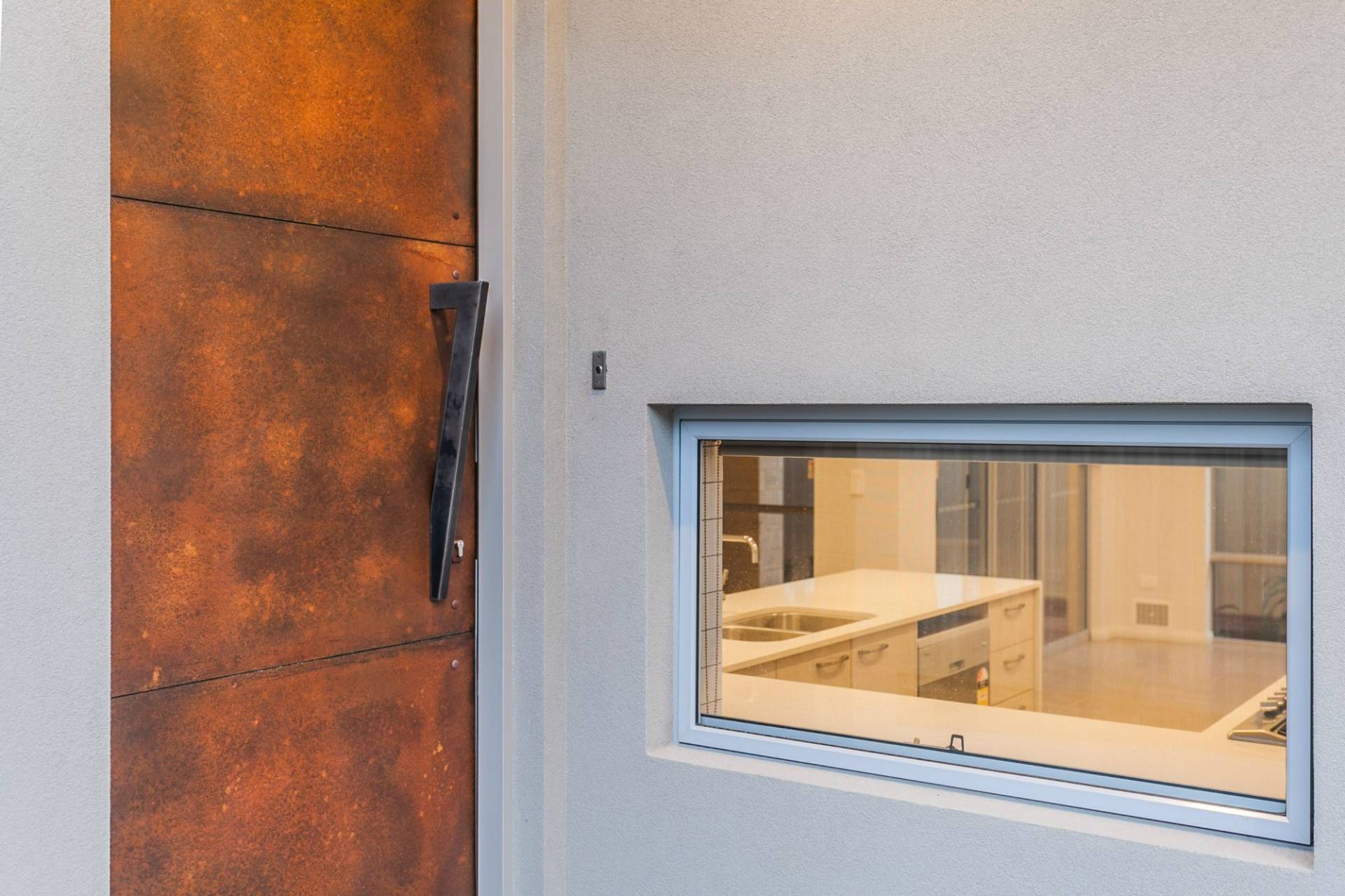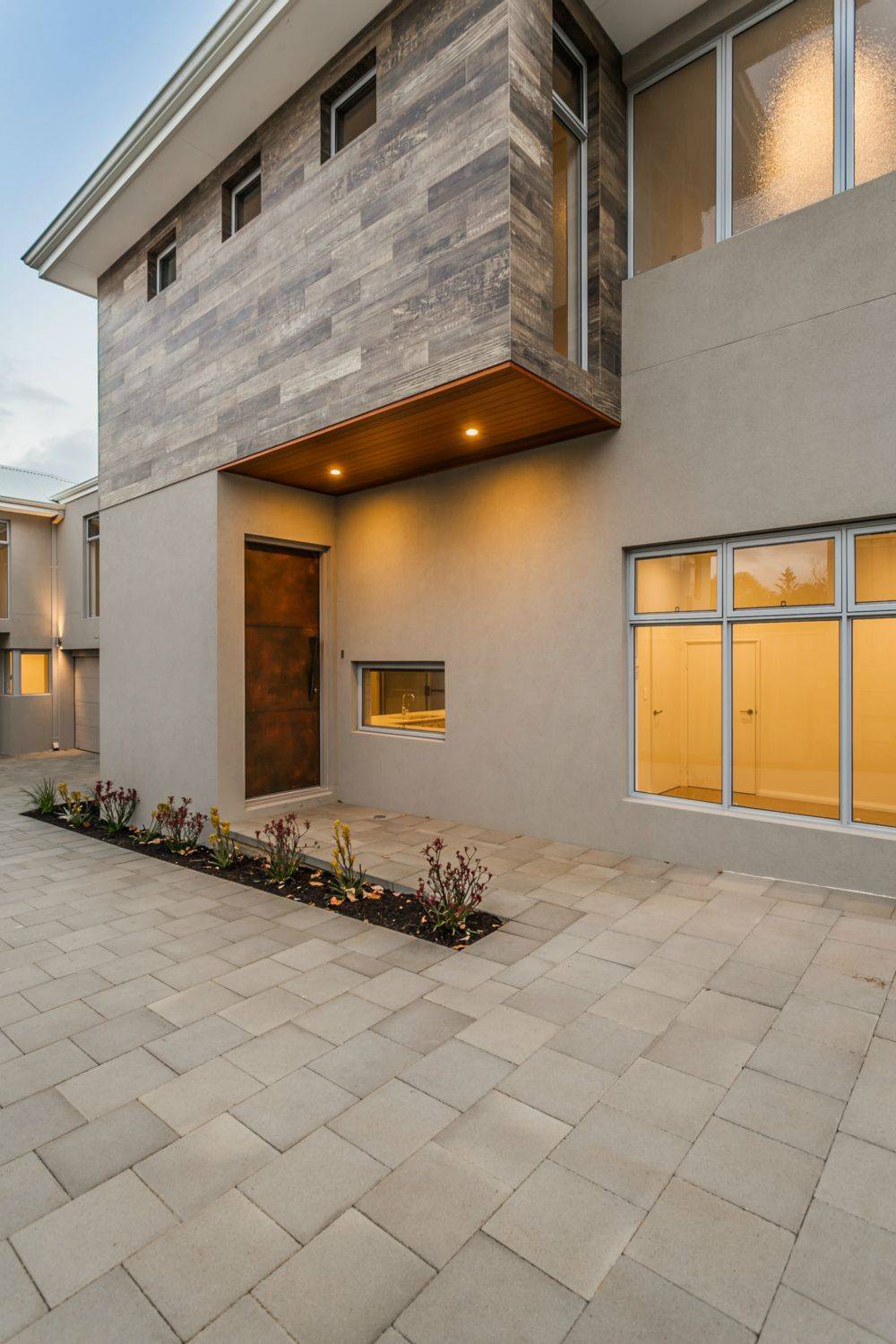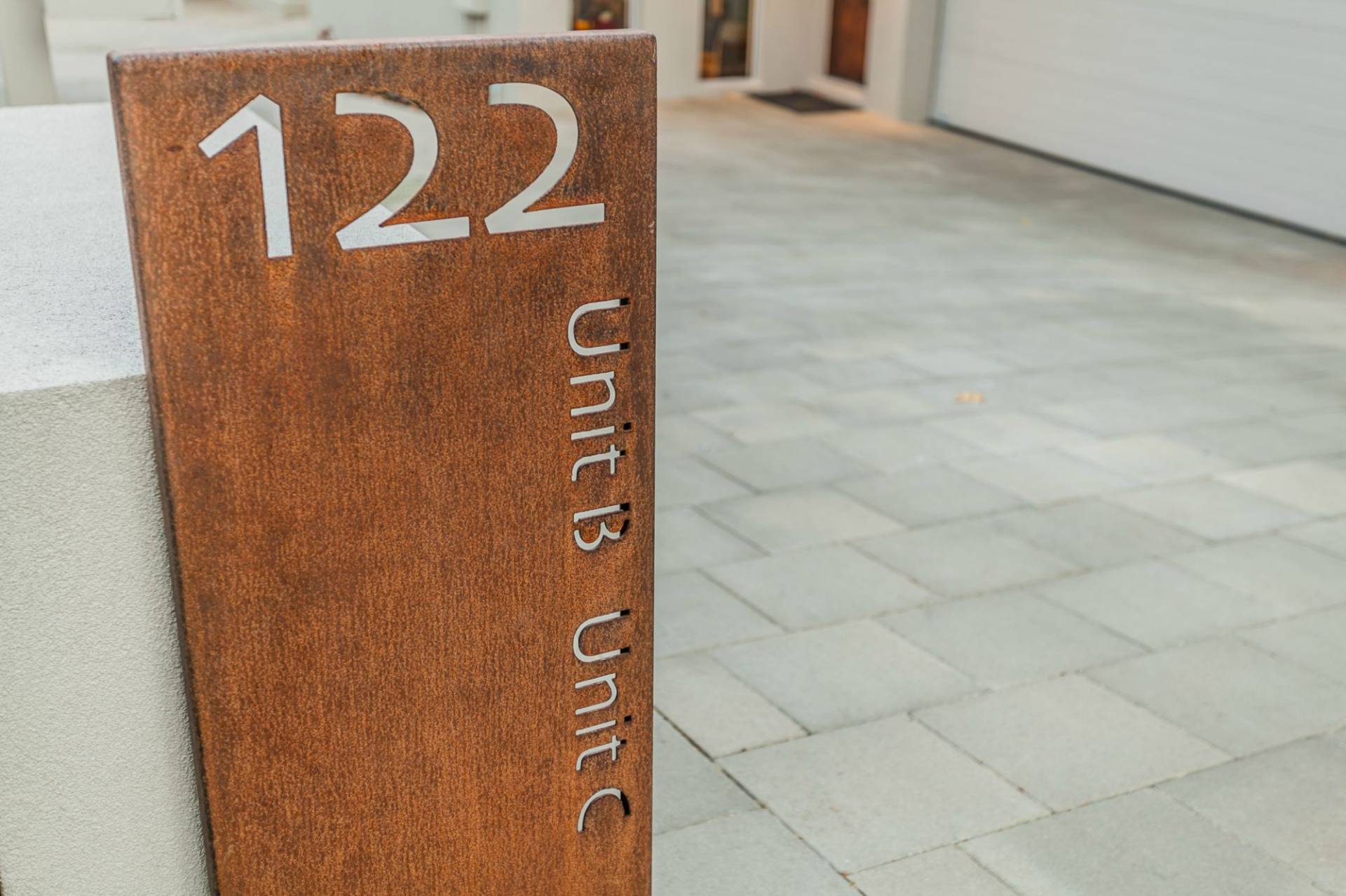 - Classy night aspect with driveway lights and illuminated corten letterbox facade