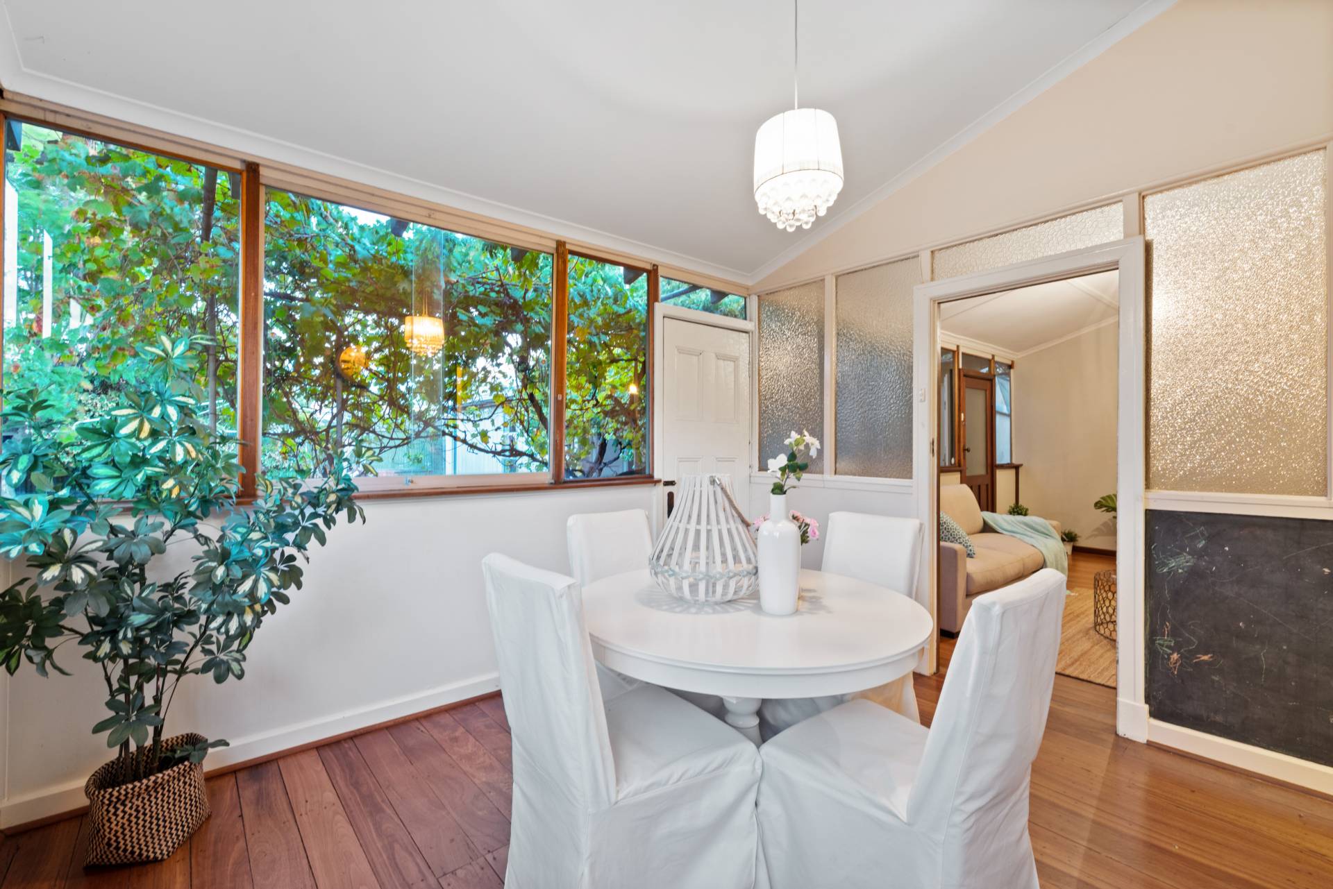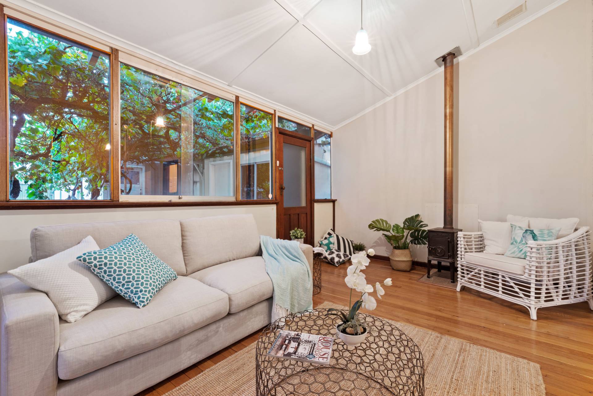 At the rear of the house, you will find the bathroom, updated with a bath and offering ample space for all the family. Also located at the rear you will find the living area and dining area, both looking out to the stunning garden compete with a Tuscan style grape vine feature, truly a beautiful view.