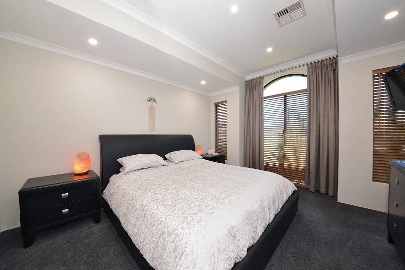 Spacious master bedroom with feature ceiling and lighting, wall mounted TV point, large walk in robe and new carpets