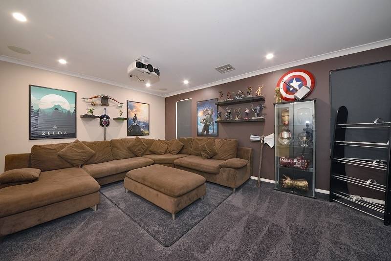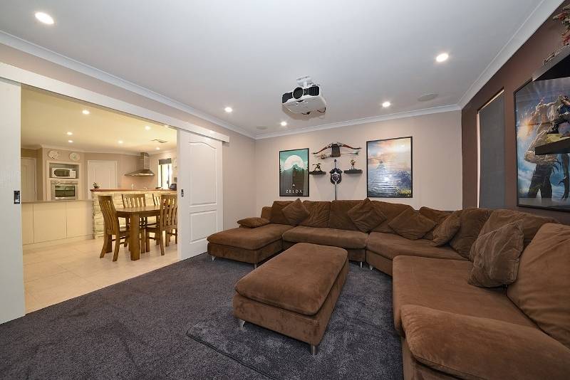 This perfect family home comes complete with 4 bedrooms, 2 bathrooms, separate TV/media room, enclosed gamesroom / home theatre plus open plan meals and living area all with a stylish décor and finish throughout