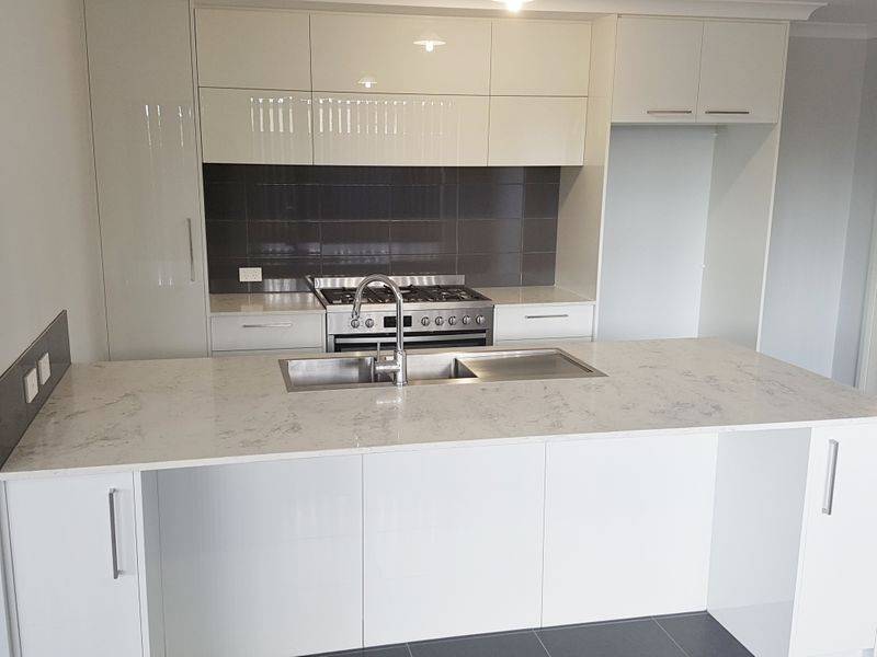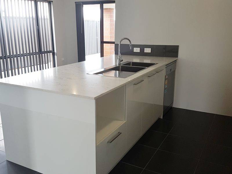 - Kitchen has been upgraded with stone benchtops, with waterfall edges. Plenty of cupboards and a double fridge recess.